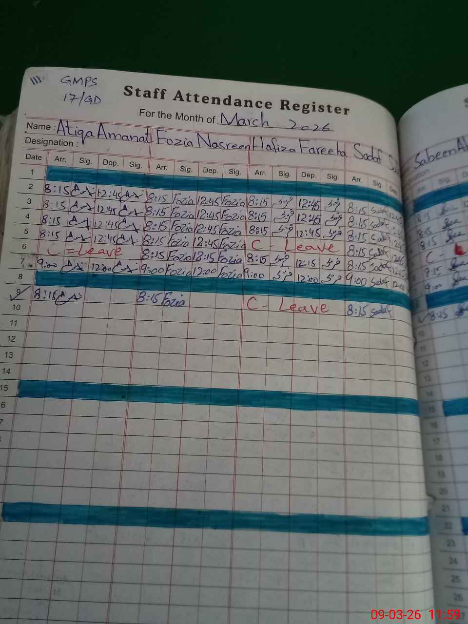 | Leave | Duty | Absent | Maternity | Medical | Ex- Pak |