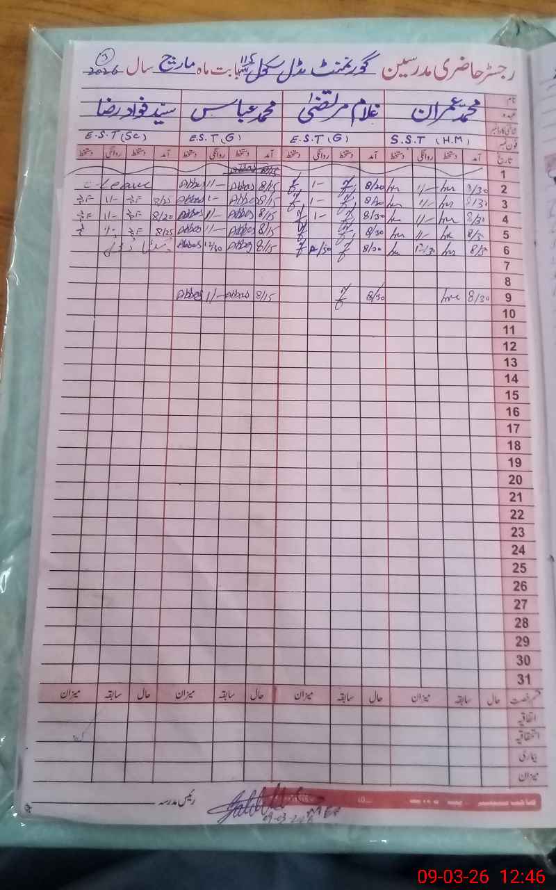 | Name: MU**** IM**** Designation: (School Headmaster's/Headmistress's) S.S.T (GENERAL) Phone/Cell Number: 03**** |