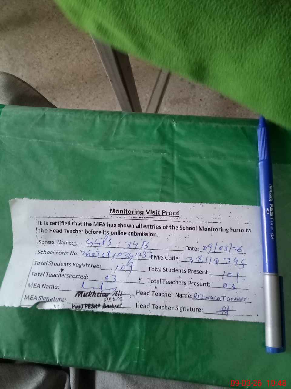 | EMIS Code: 38110345 | Name of School: GGPS CHAK NO.34-B | |||