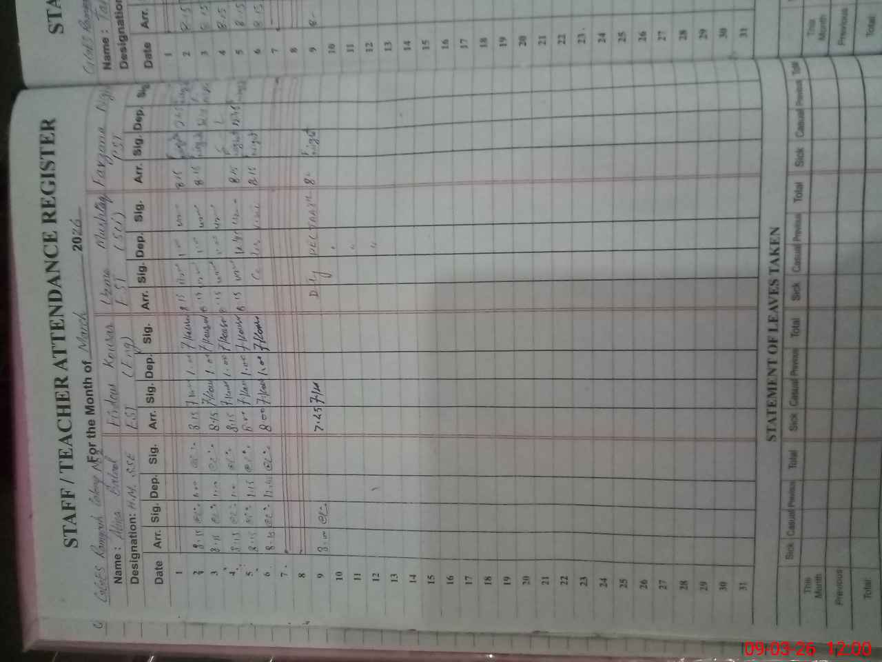 | 33**** | Uz**** Mu**** | EST Science | Regular | 0 | 0 | 0 | 0 | 0 | 0 | 0 | 0 | 0 | Exam Duty |