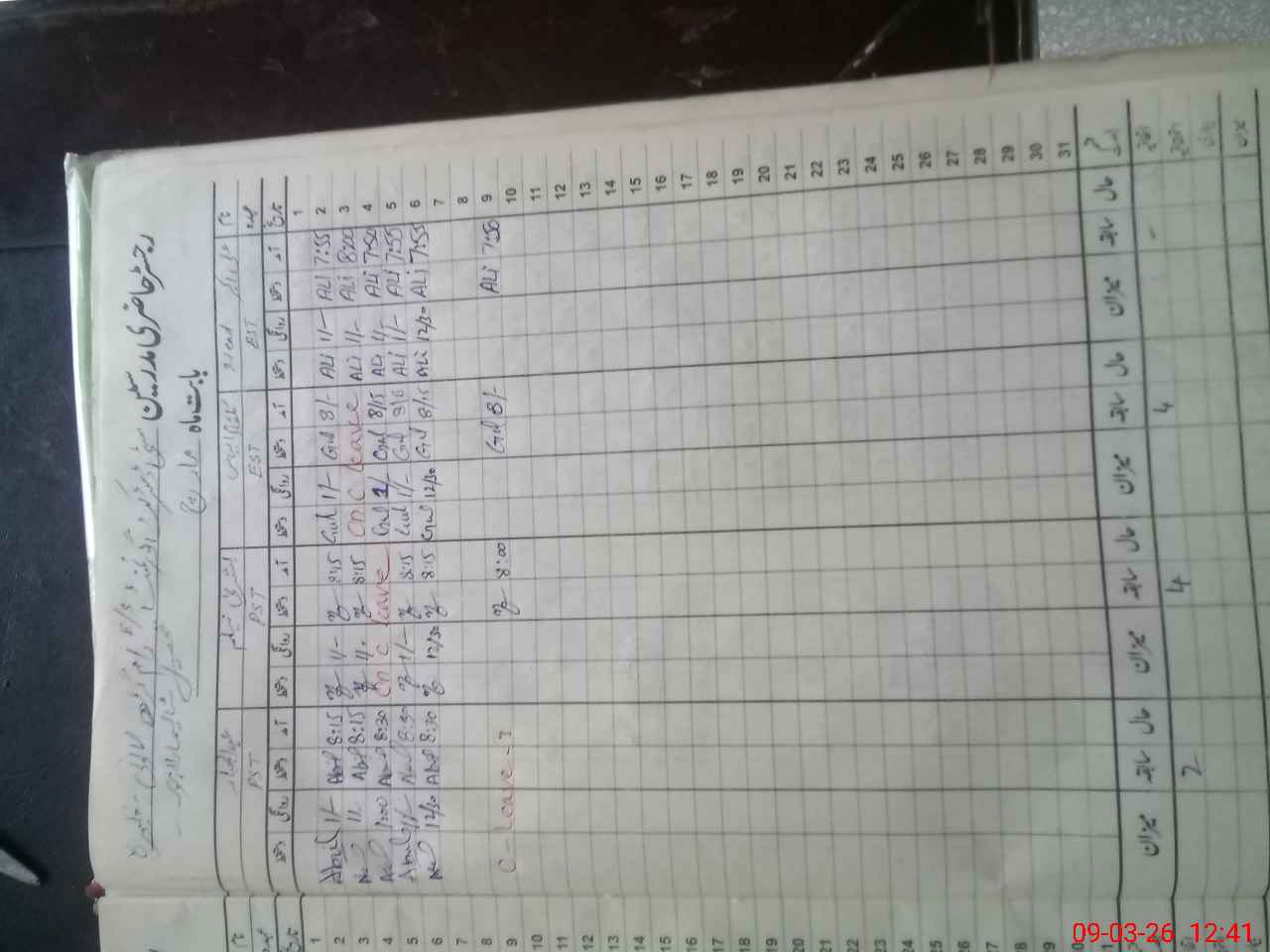 | CNIC | Full Name | Designation | R/C | Absence During Last Calender Month |