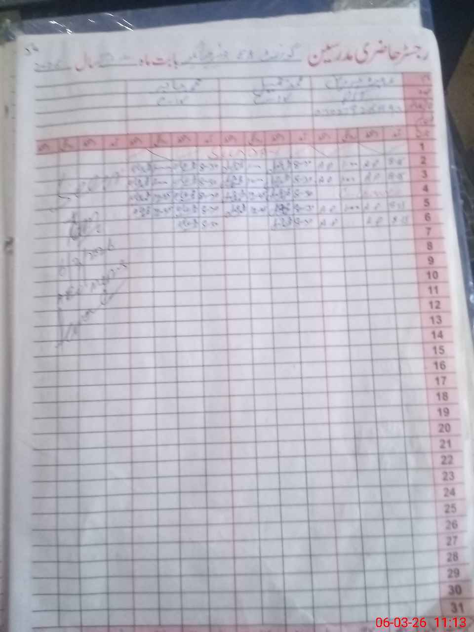 | CNIC | Full Name | Designation | R/C | Absence During Last Calender Month |
