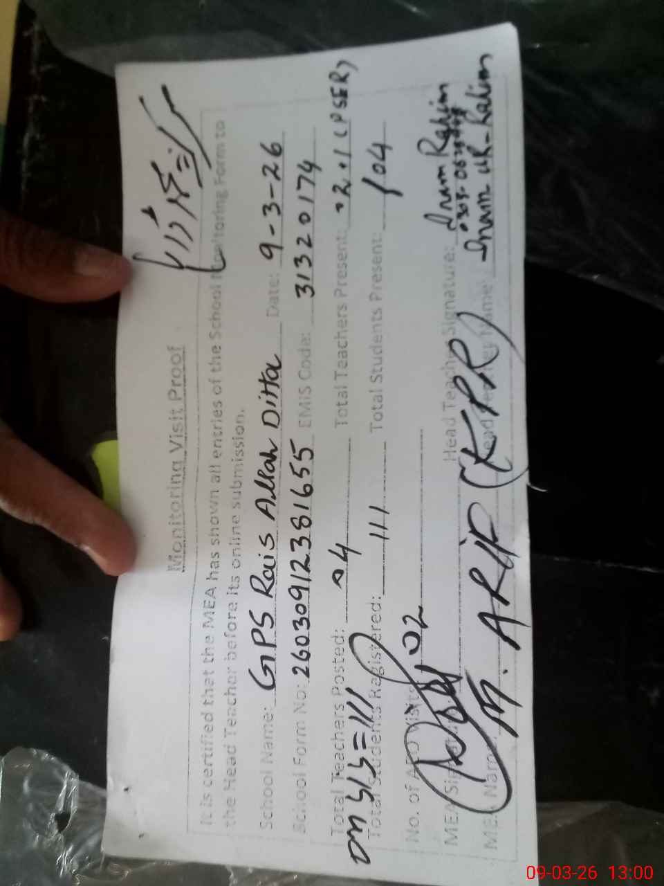| EMIS Code: 31320174 | Name of School: GPS RAIS ALLAH DITTA | |||