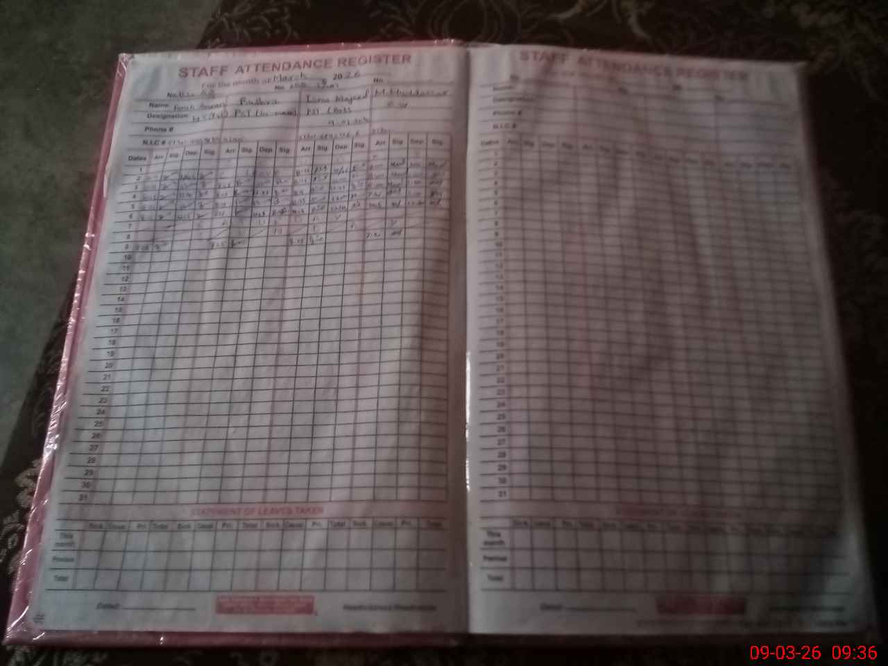 | CNIC | Full Name | Designation | R/C | Absence During Last Calender Month |