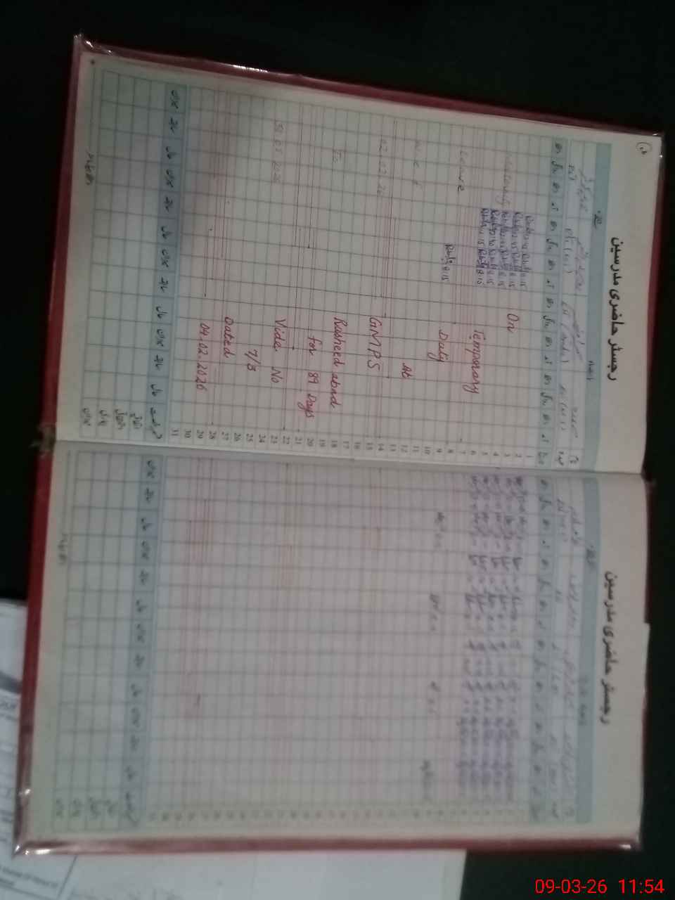| CNIC | Full Name | Designation | R/C | Absence During Last Calender Month |