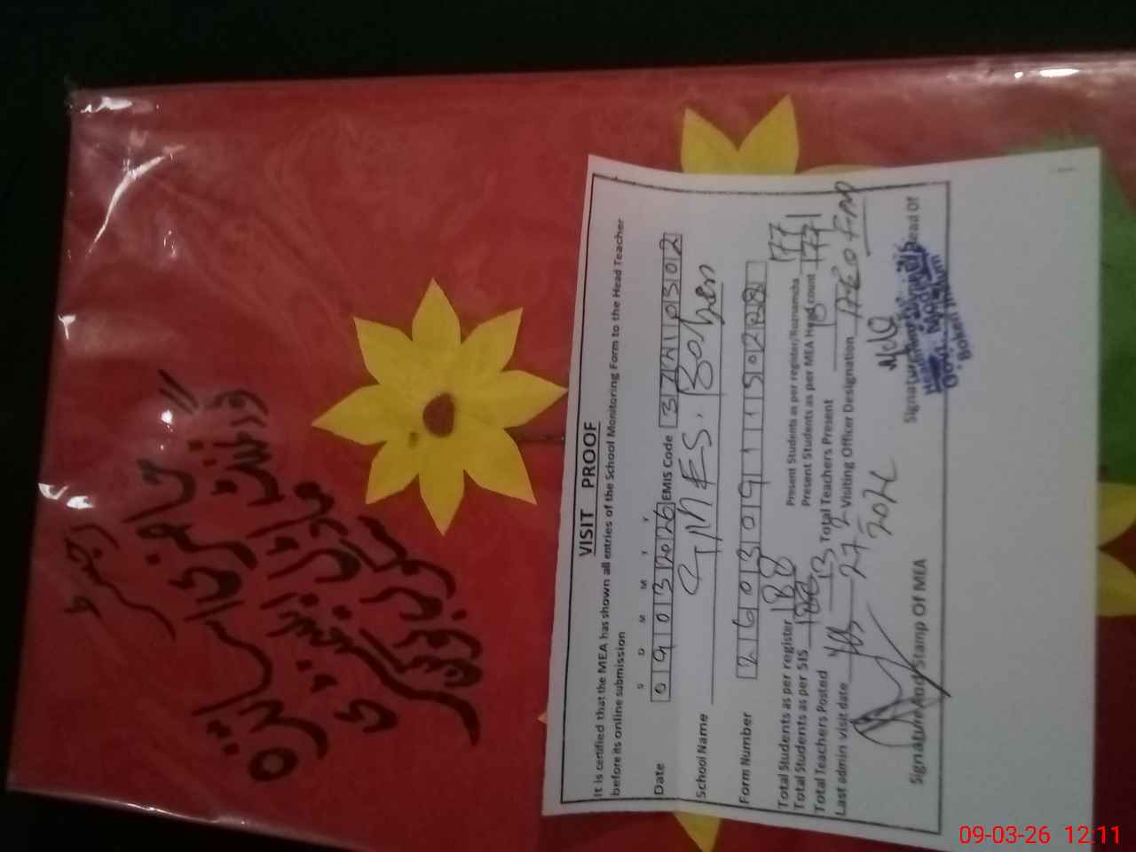 | Attendance Register | Head Teacher | MEA with School | Visit Proof |