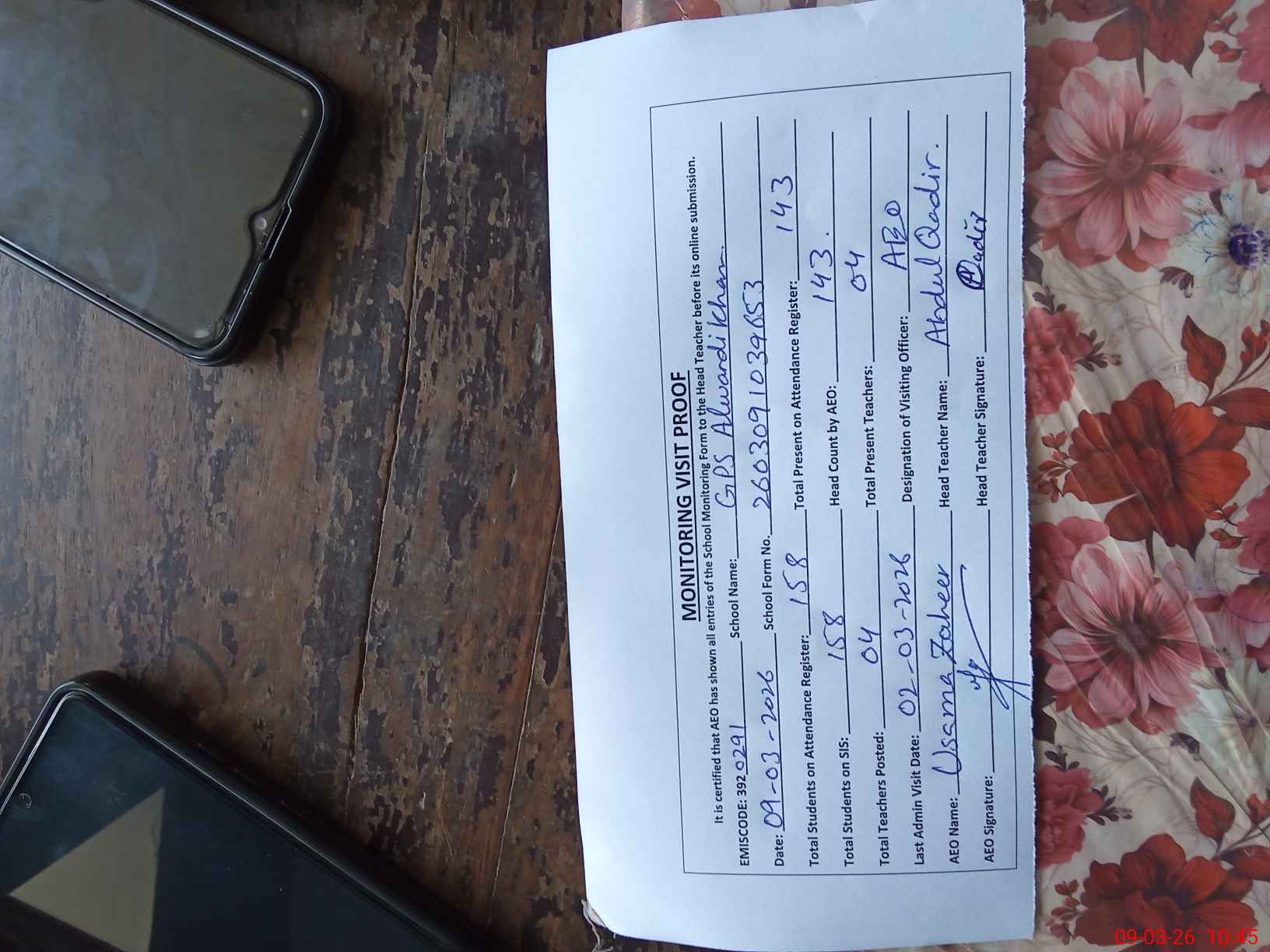 | EMIS Code: 39210291 | Name of School: GPS ALWARDI KHAN | |||