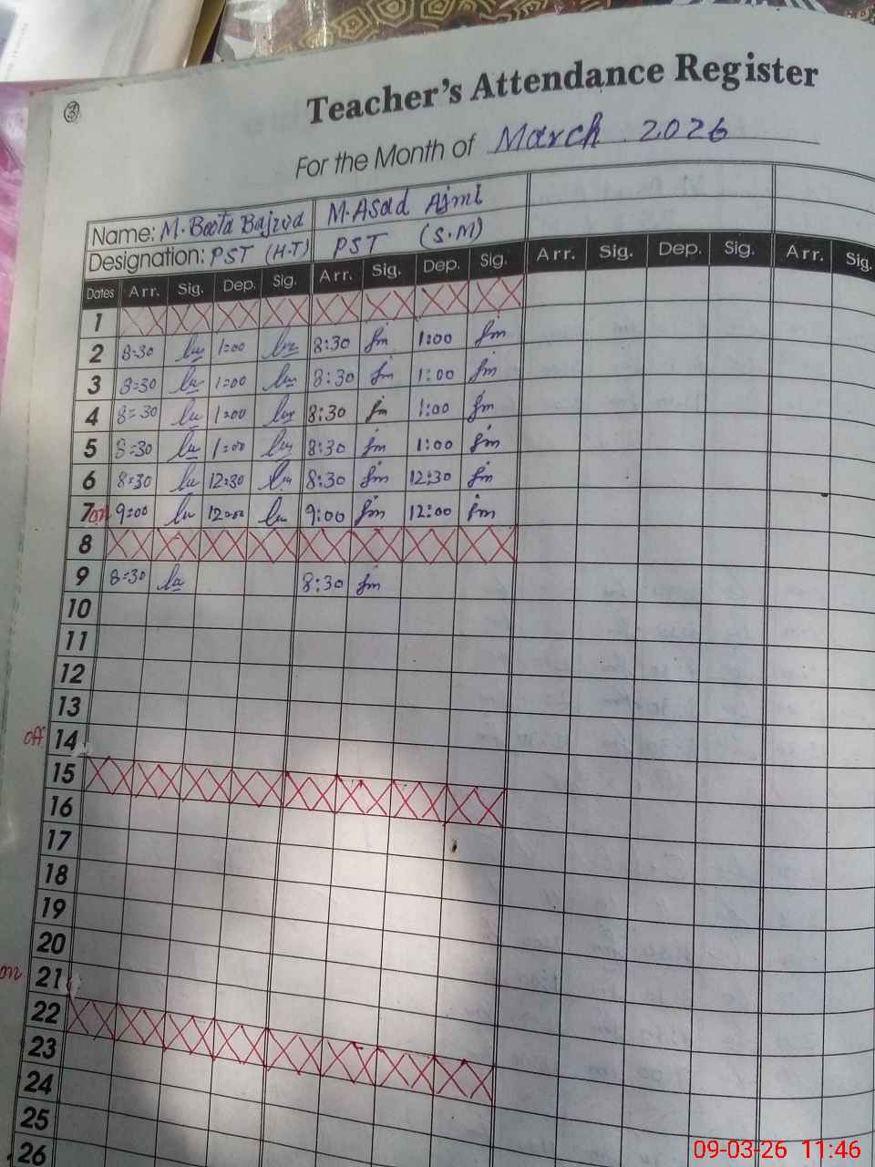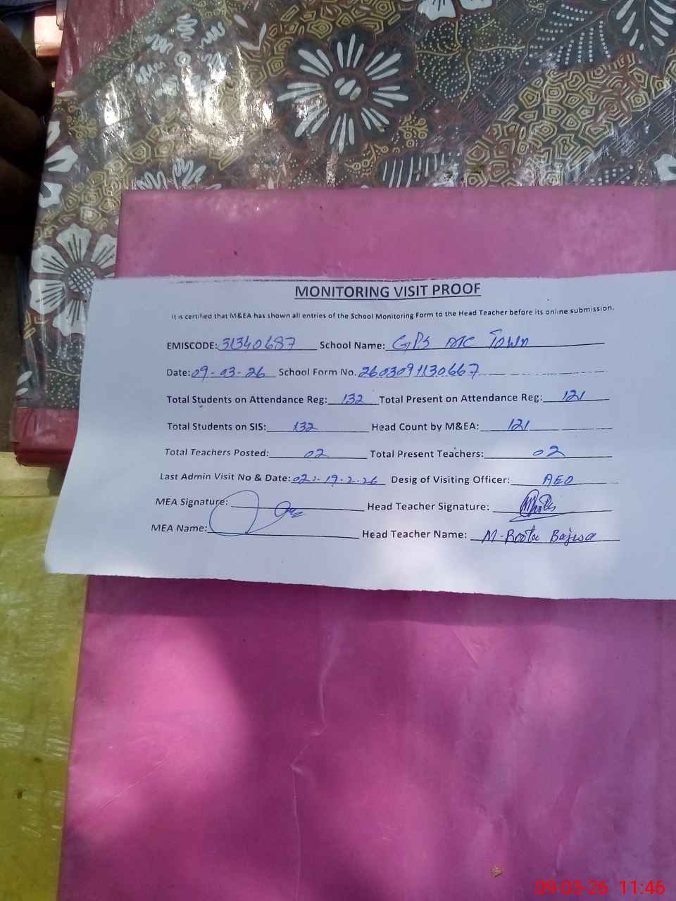 | Attendance Register | Head Teacher | MEA with School | Visit Proof |