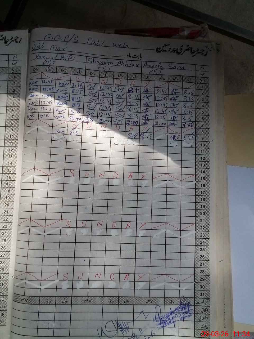 | CNIC | Full Name | Designation | R/C | Absence During Last Calender Month |