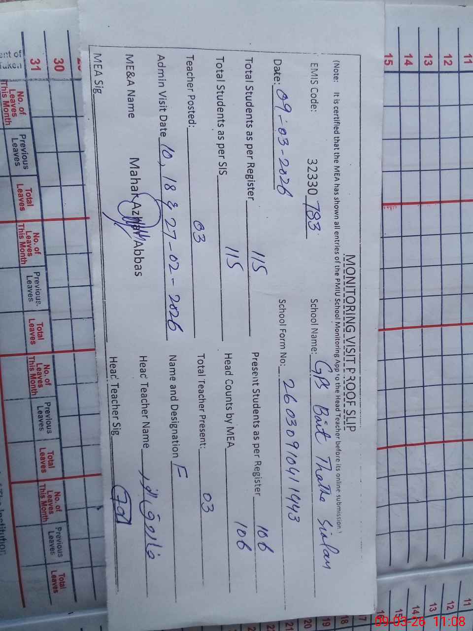 | EMIS Code: 32330783 | Name of School: GPS BAIT THATHA SIALAN | |||