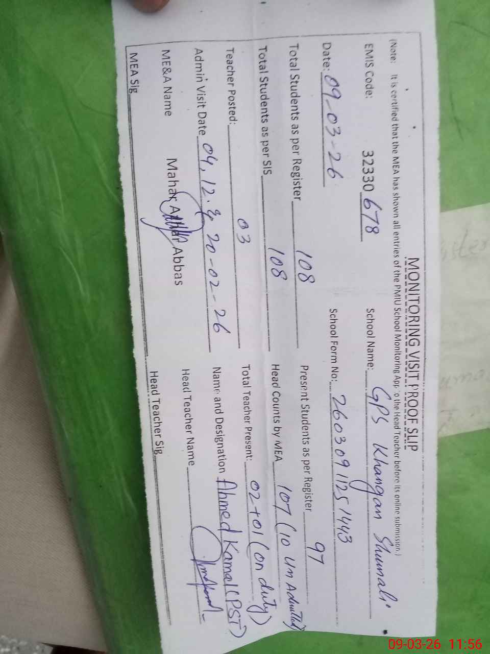 | EMIS Code: 32330678 | Name of School: GPS KHANGAN SHUMALI | |||