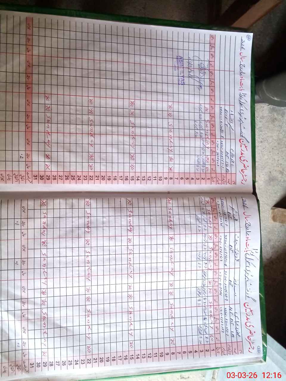 | CNIC | Full Name | Designation | R/C | Absence During Last Calender Month |