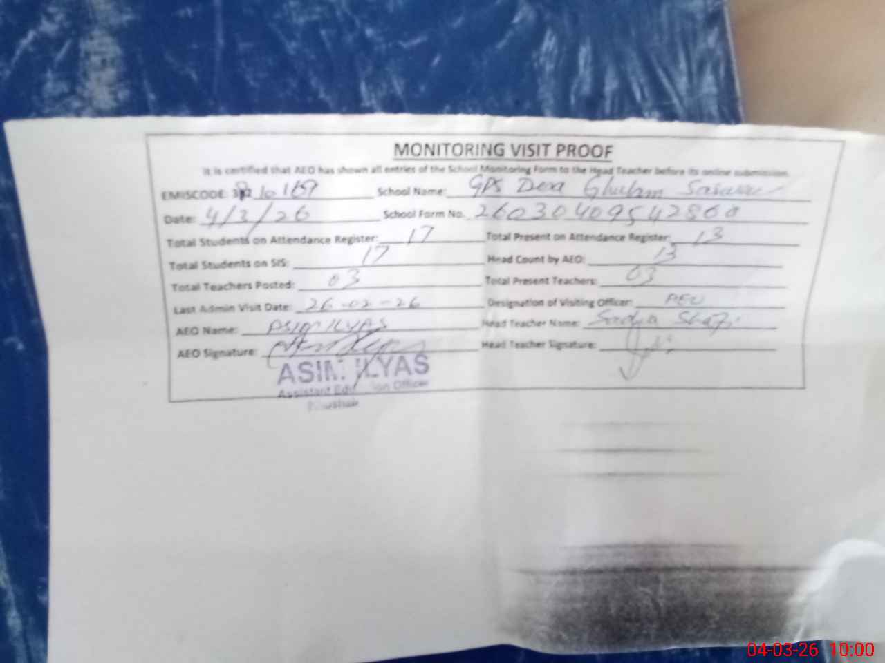 | EMIS Code: 38210169 | Name of School: GPS DERA GHULAM SARWAR | |||