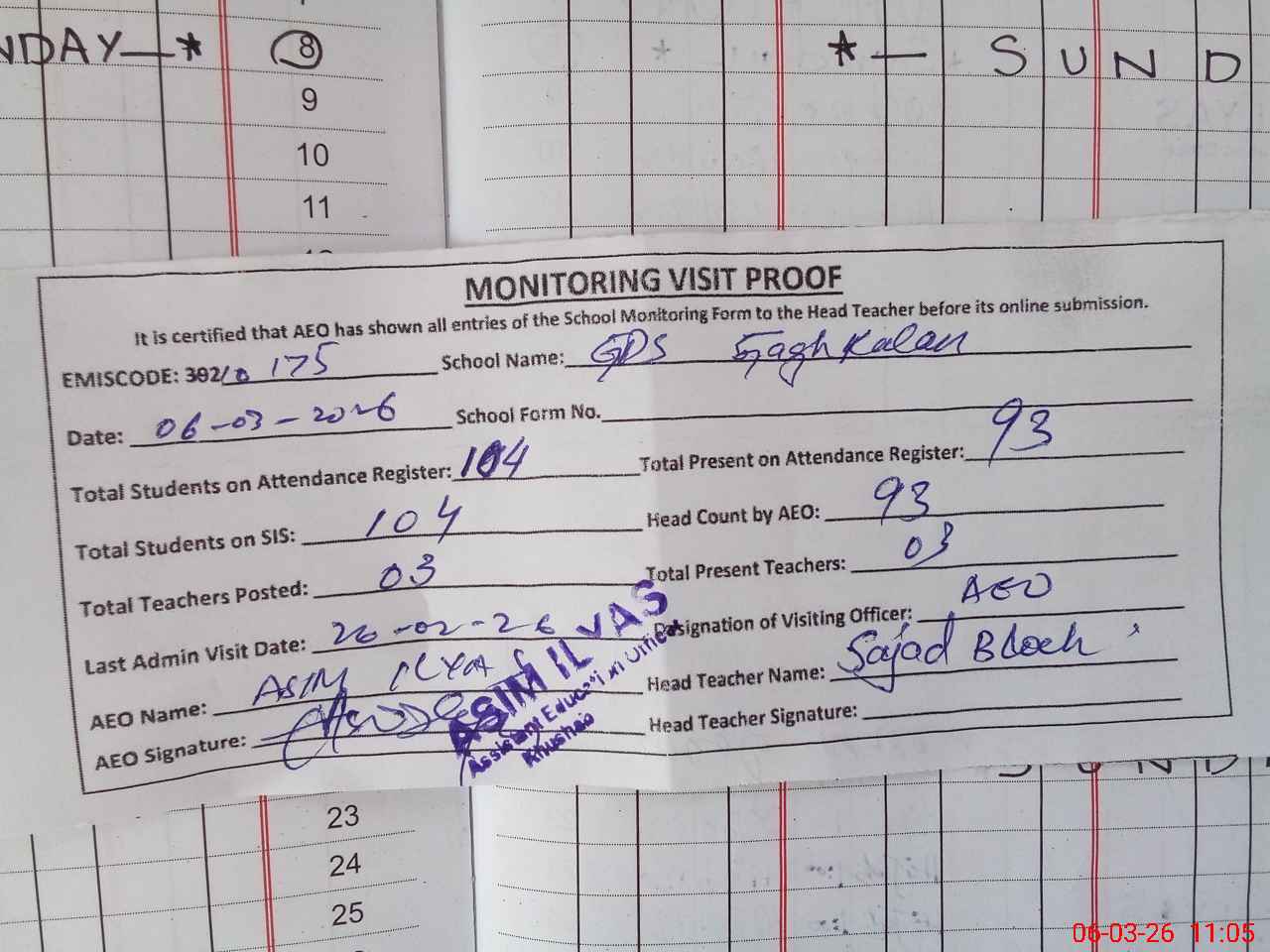 | EMIS Code: 38210175 | Name of School: GPS GHAGH KALAN | |||