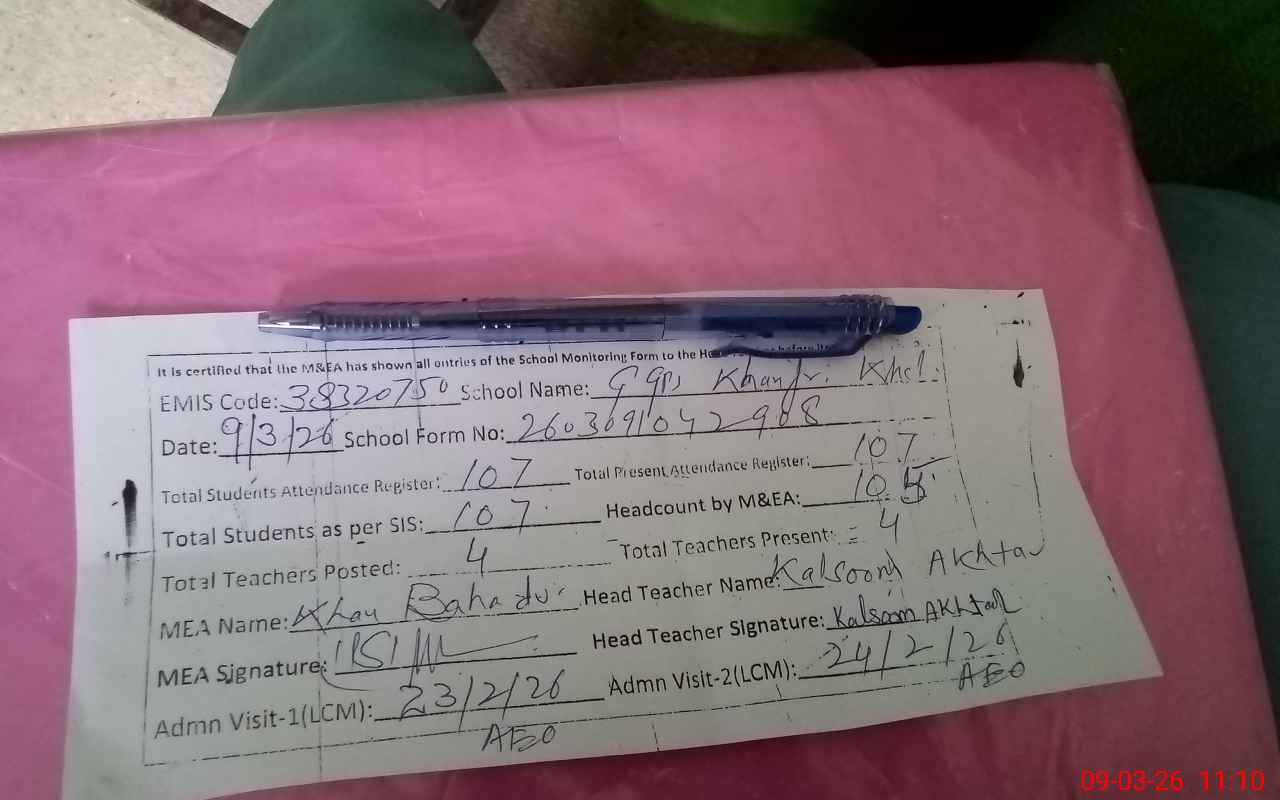 | EMIS Code: 38320750 | Name of School: GGPS KHANJRI KHEL | |||