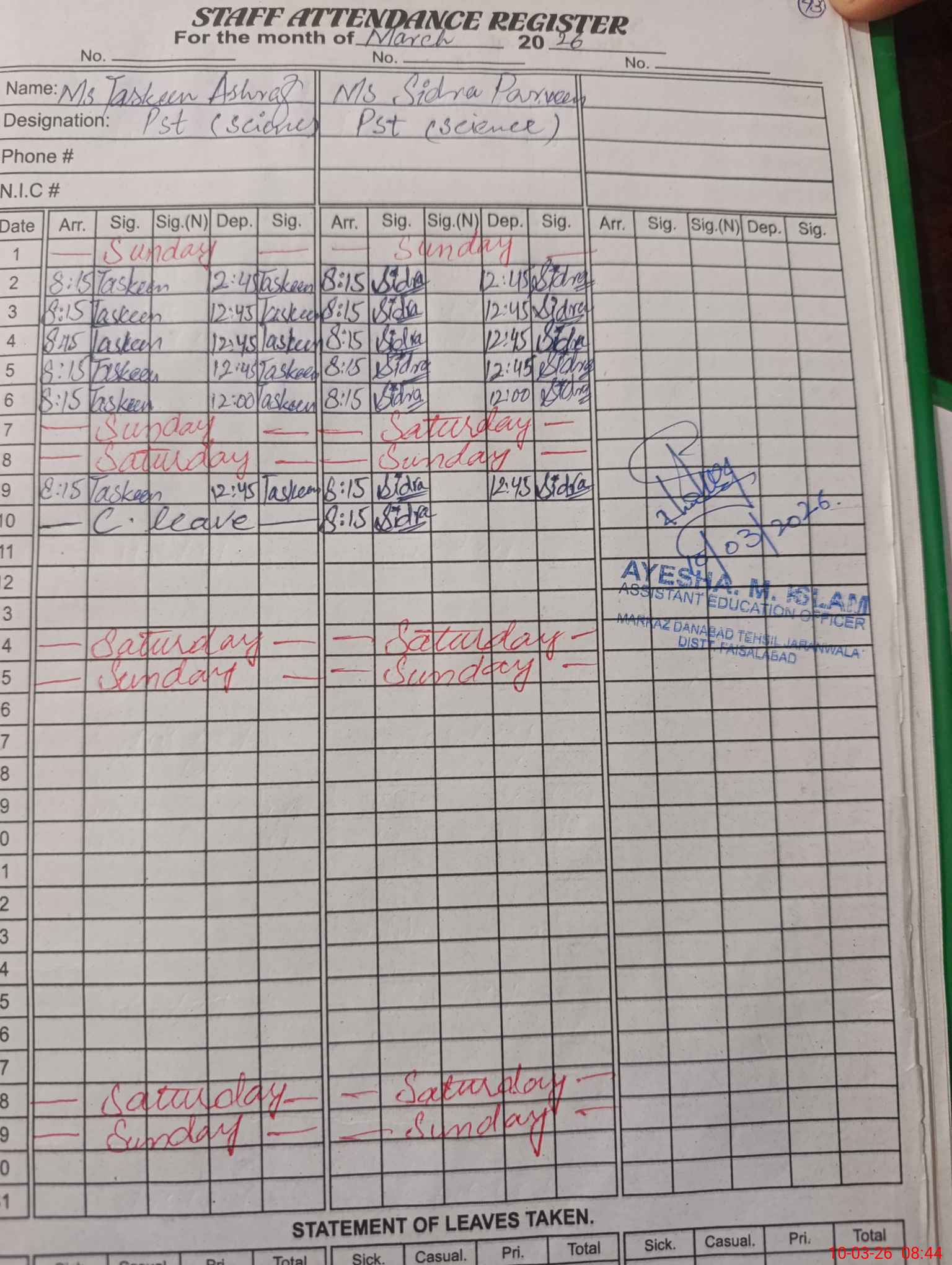 | 33**** | Ta**** As**** | PST Science/Maths | Regular | 0 | 0 | 0 | 0 | 0 | 0 | 0 | 0 | 0 | Casual |