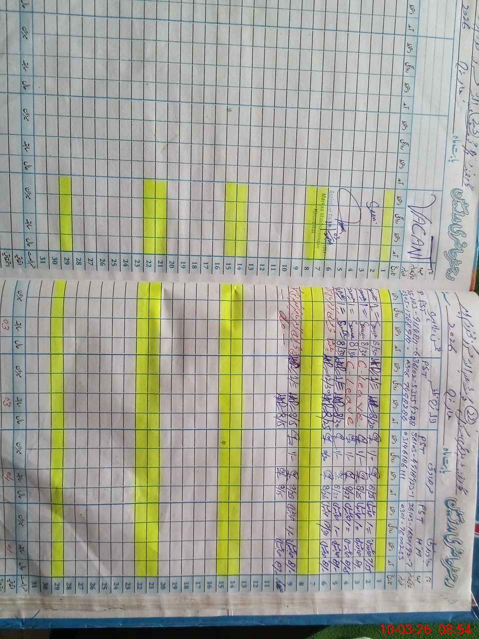 | CNIC | Full Name | Designation | R/C | Absence During Last Calender Month |