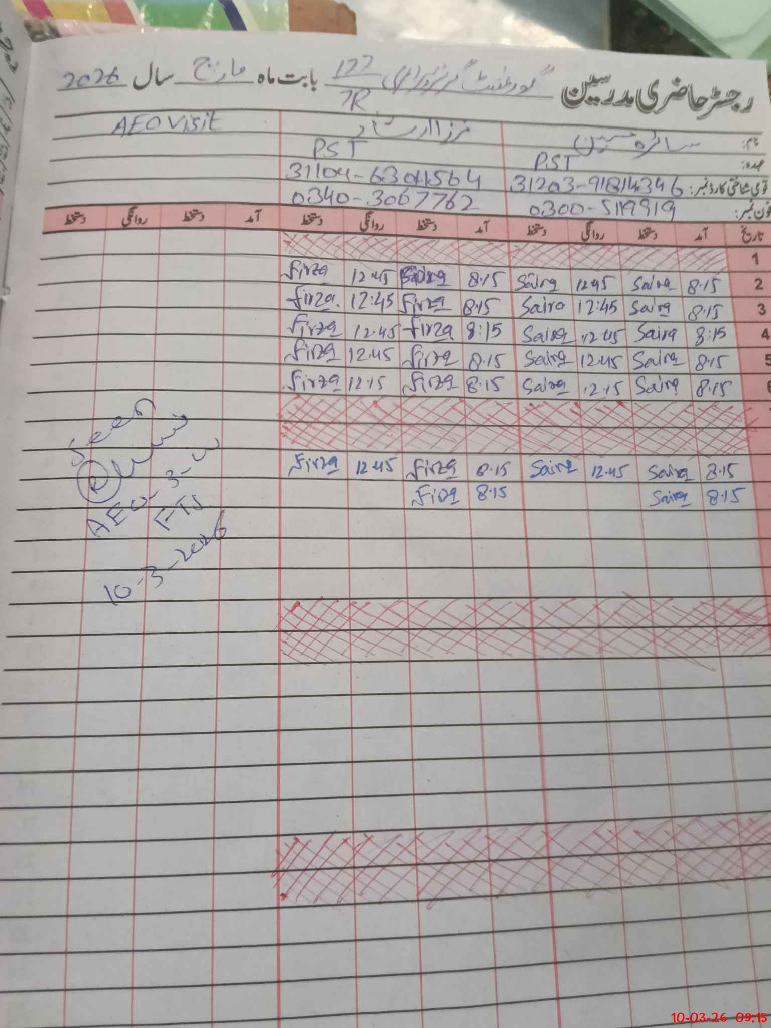 | Name of AEO: | AEO Contact No.: | MEA Phone#: 03**** | ||