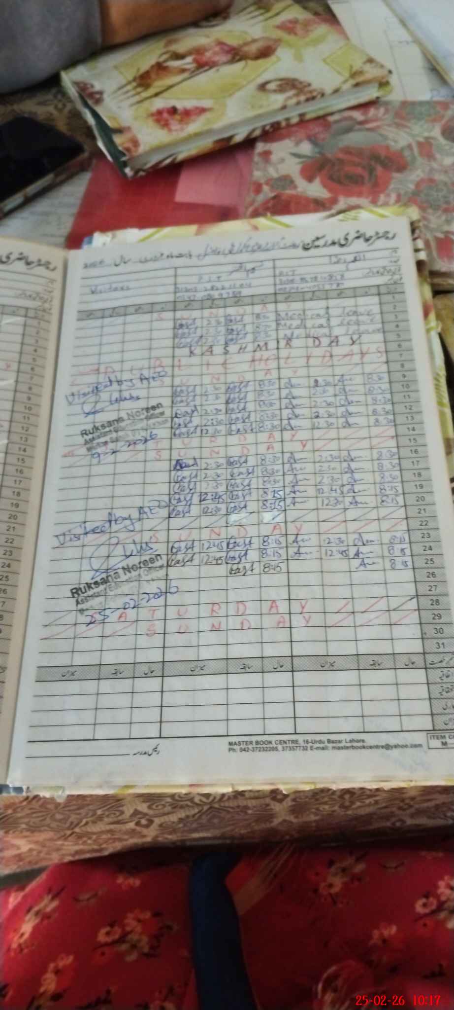 | CNIC | Full Name | Designation | R/C | Absence During Last Calender Month |