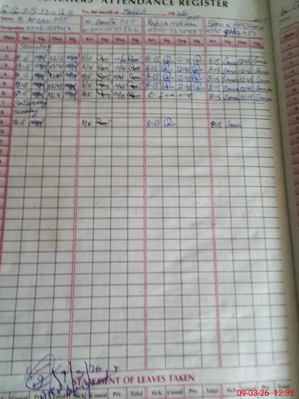 | Name: MU**** AF**** Designation: (School Headmaster's/Headmistress's) PST Phone/Cell Number: 03**** |