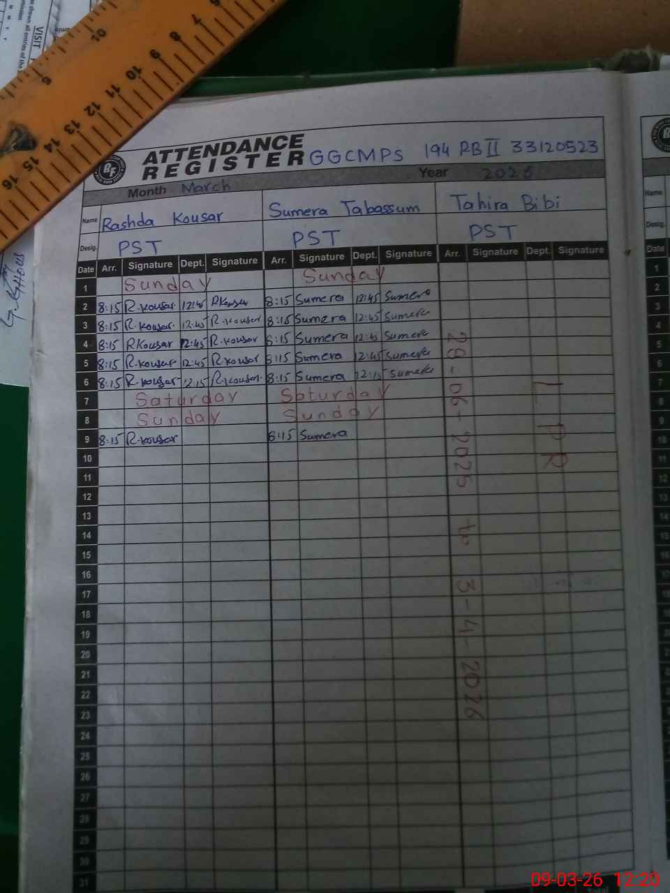 | Monitoring Date: 09-03-2026 | Start Time: 09-03-2026 11:35 AM | End Time: 09-03-2026 12:28 PM | Name of MEA: GH**** GH**** | |