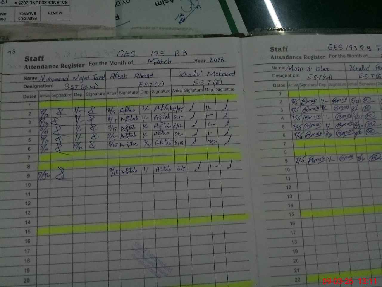 | 33**** | Kh**** Ba**** | PST Science/Maths | Regular | 0 | 0 | 0 | 0 | 0 | 0 | 0 | 0 | 0 | Exam Duty |