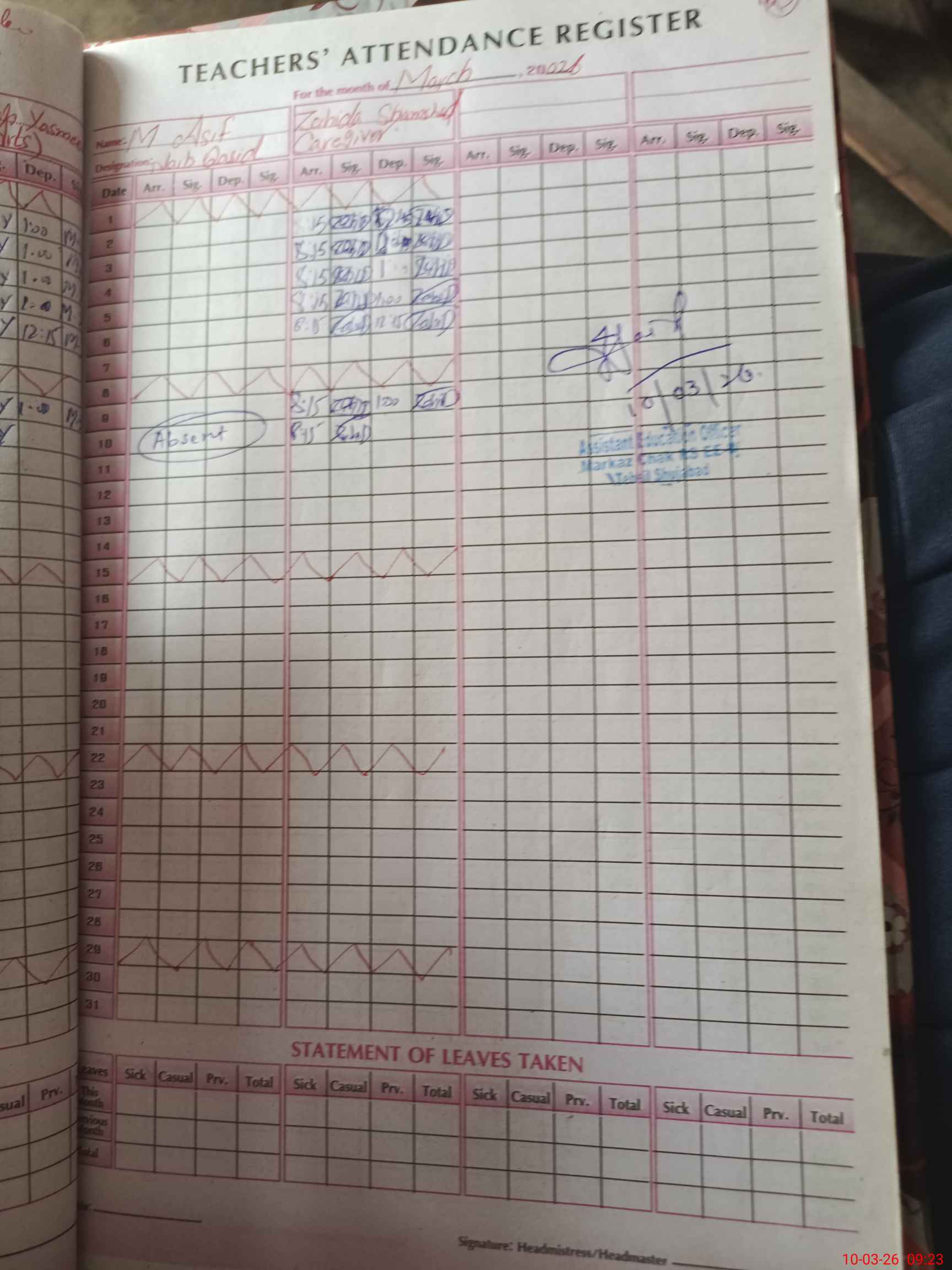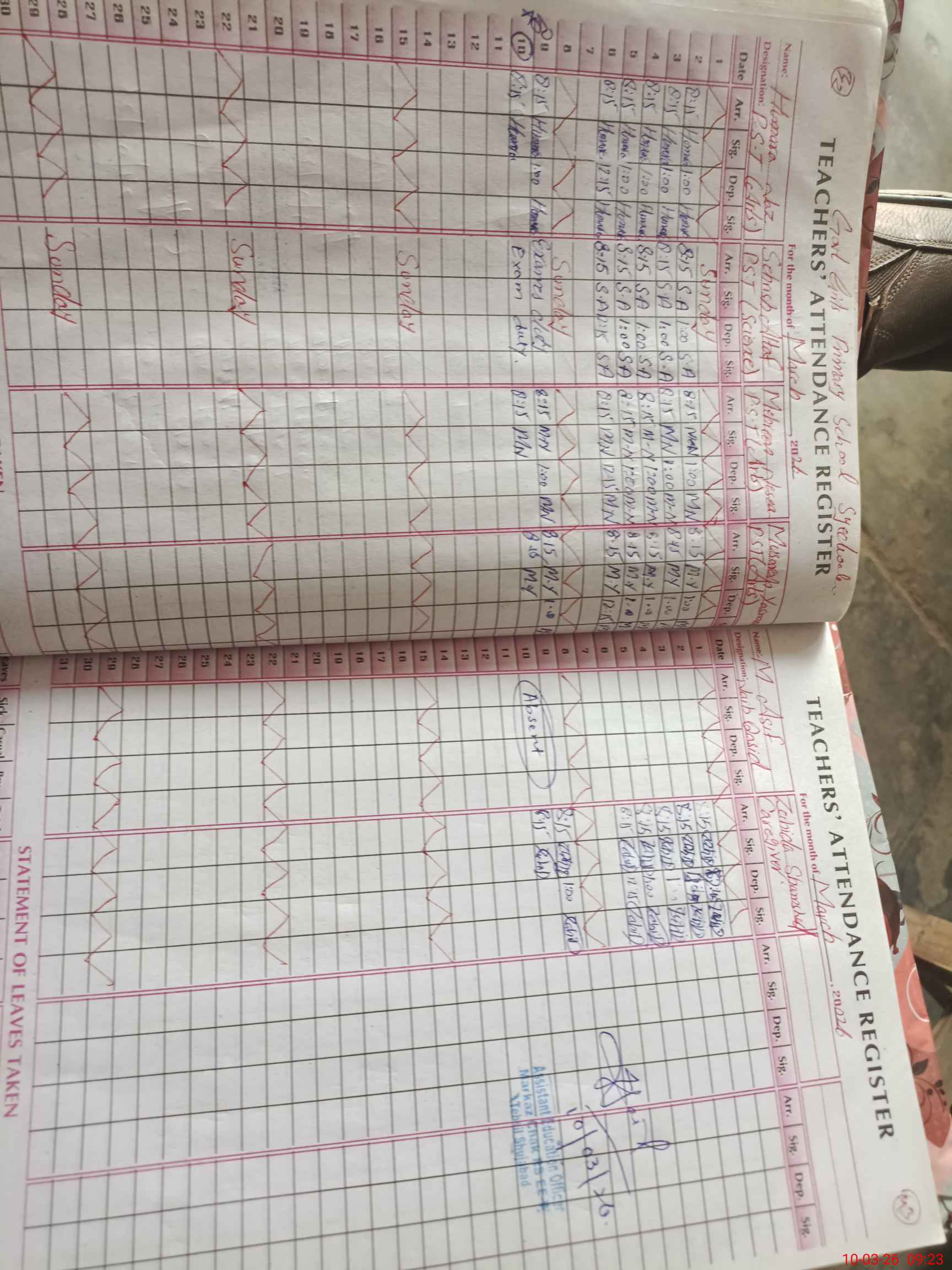 | 36**** | Mu**** As**** | NAIB QASID | 0 | 0 | 28 | 0 | 0 | 0 | 0 | 0 | 0 | Absent (Un-Authorized) | |