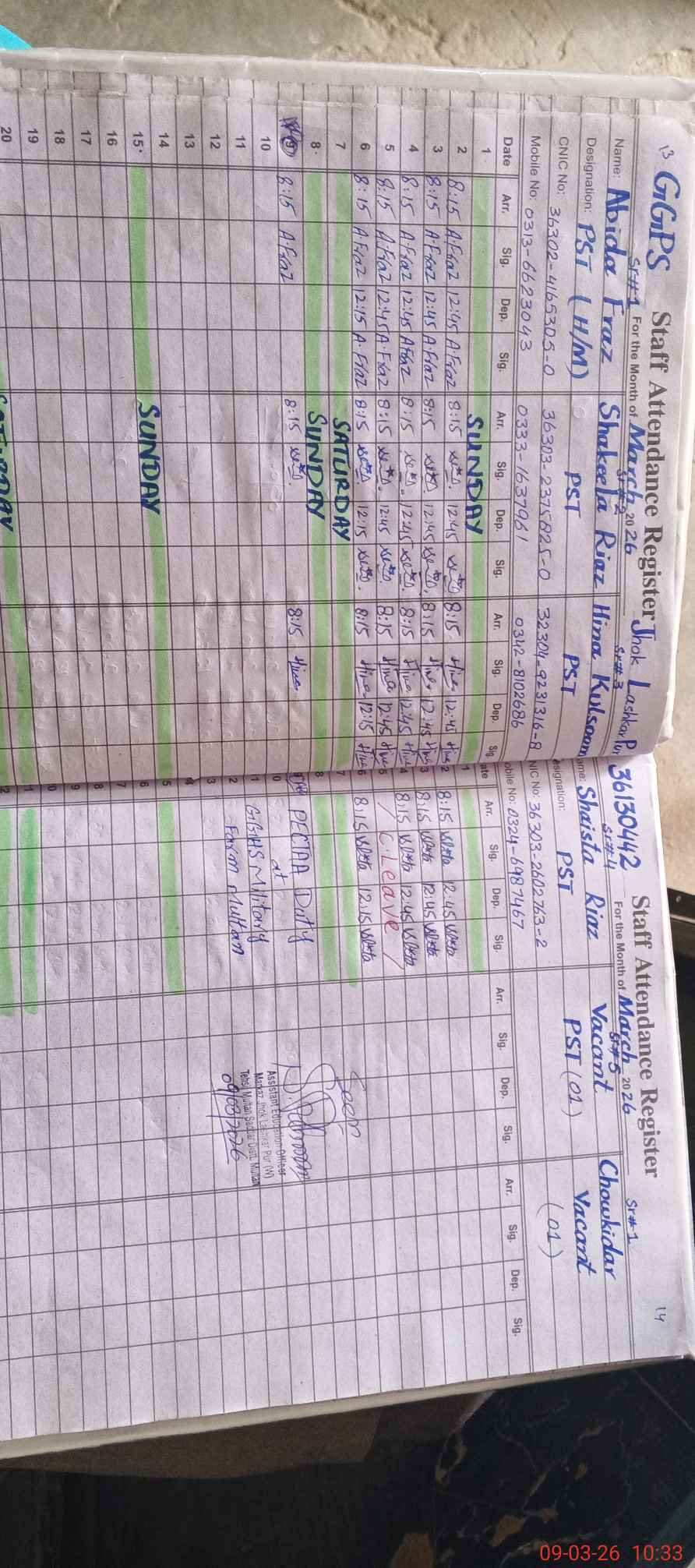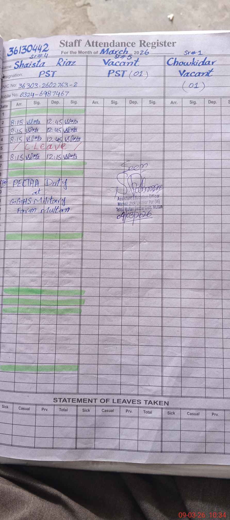 | 36**** | Sh**** Ri**** | PST Arts | Regular | 0 | 0 | 0 | 0 | 0 | 0 | 0 | 0 | 0 | Exam Duty |