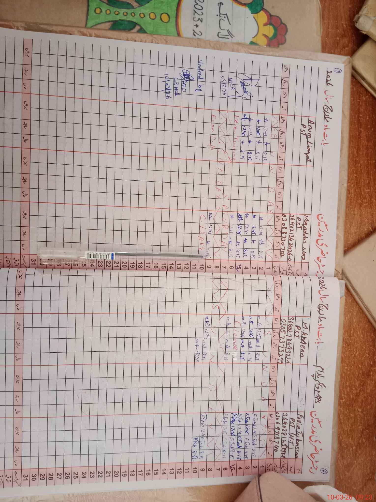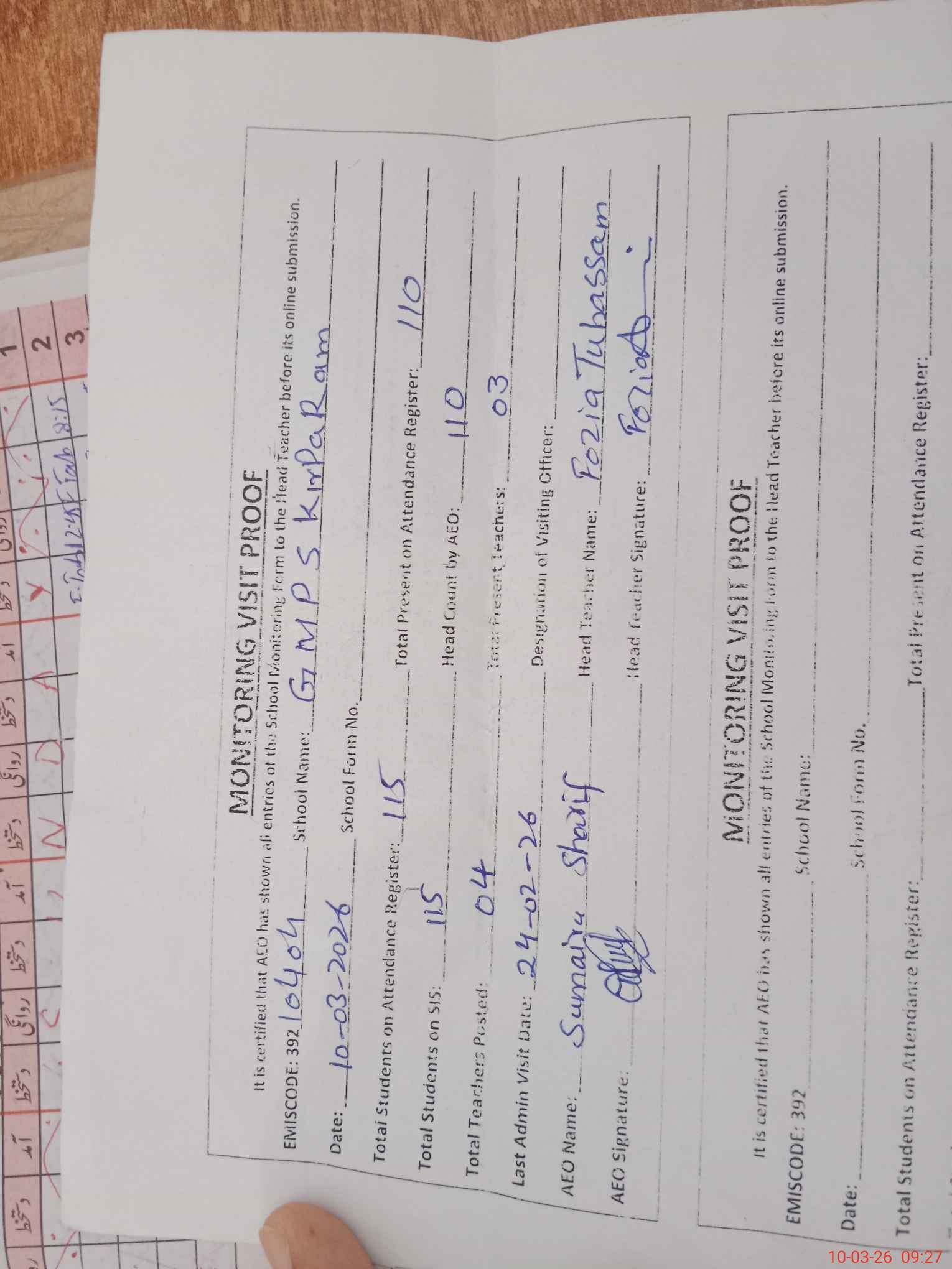 | Attendance Register | Head Teacher | MEA with School | Visit Proof |
