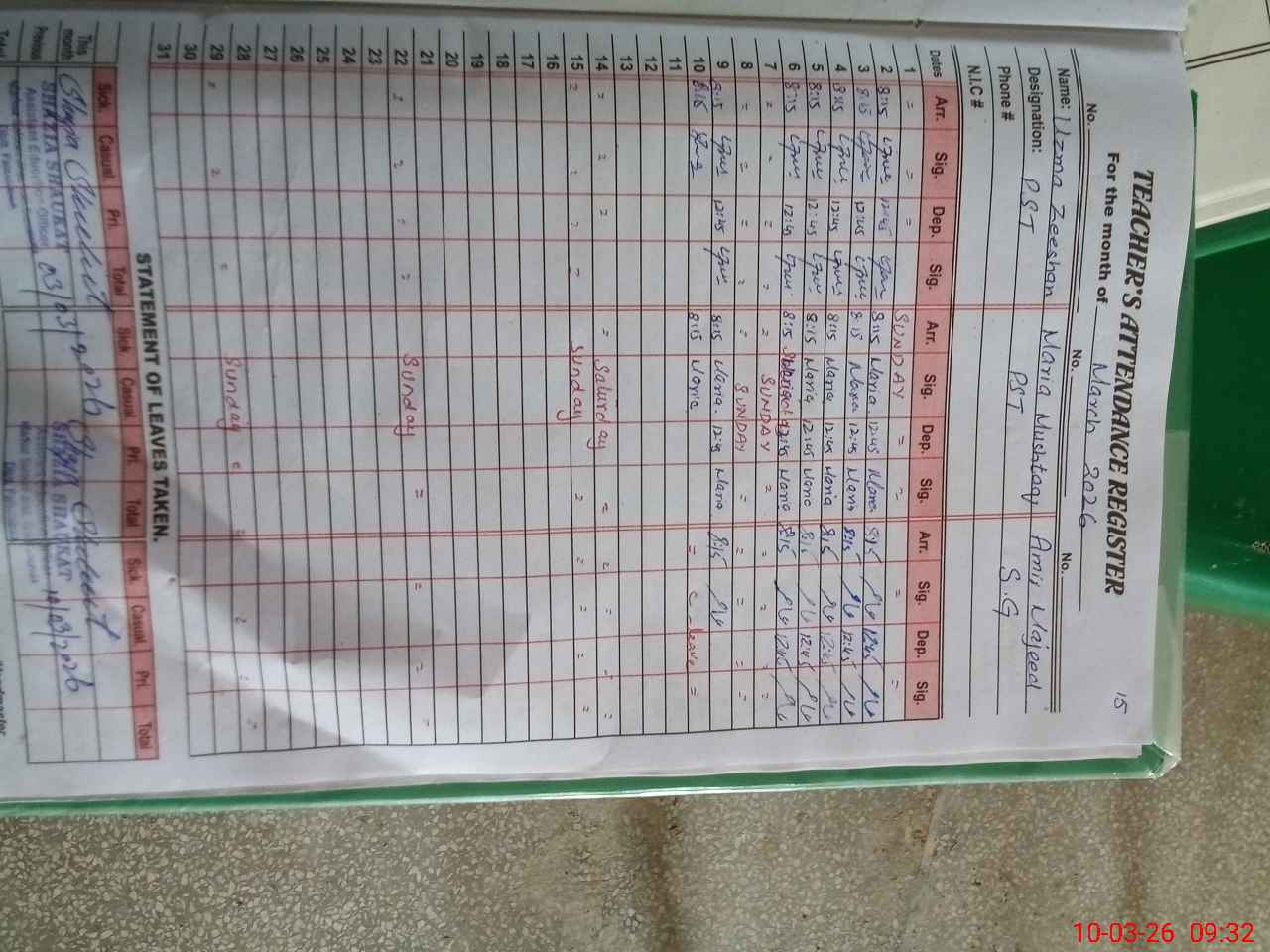 | 33**** | Ra**** Na**** | PST Arts | Regular | 0 | 0 | 0 | 0 | 0 | 0 | 0 | 0 | 0 | Exam Duty |