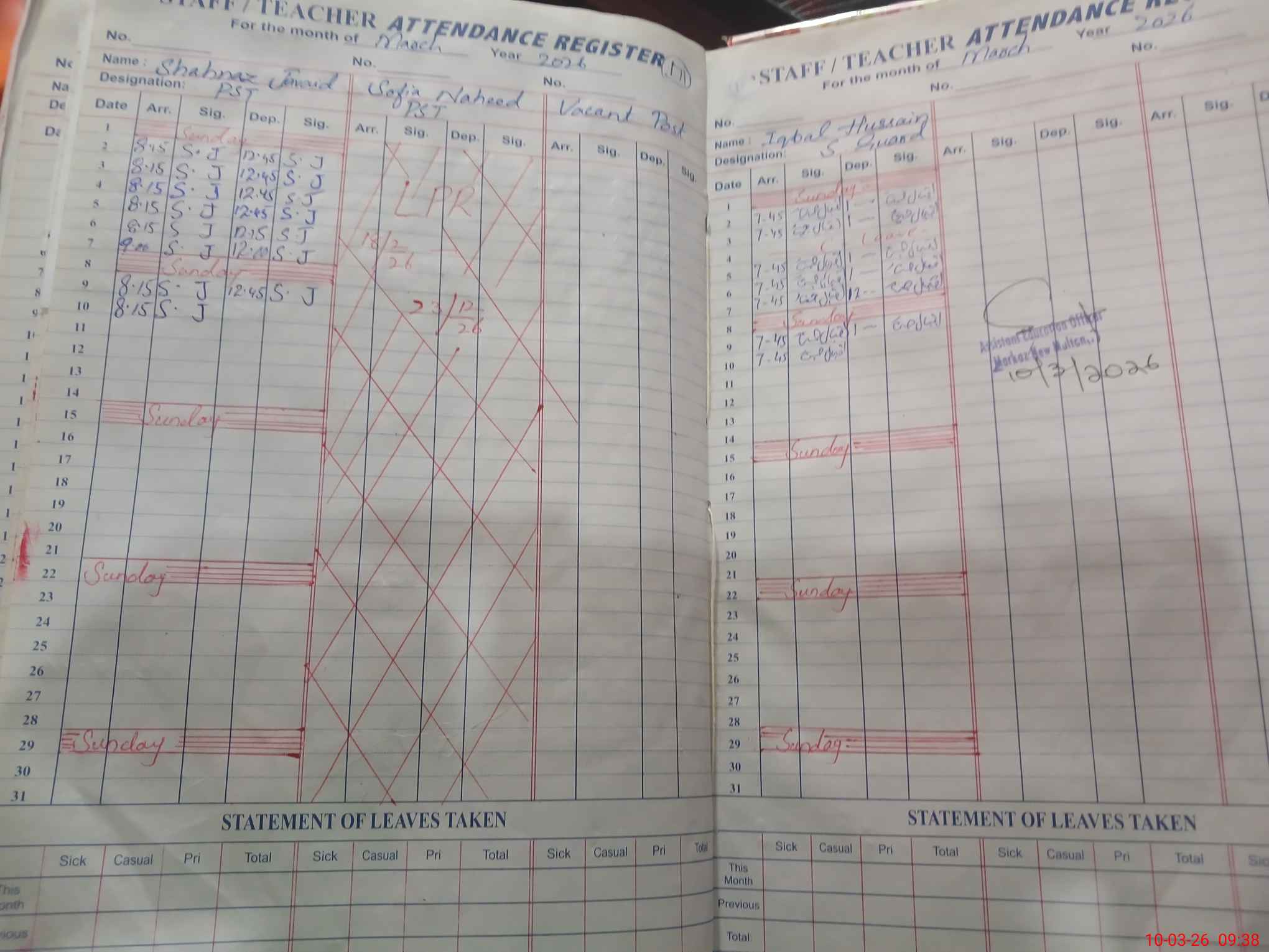 | Leave | Duty | Absent | Maternity | Medical | Ex- Pak |