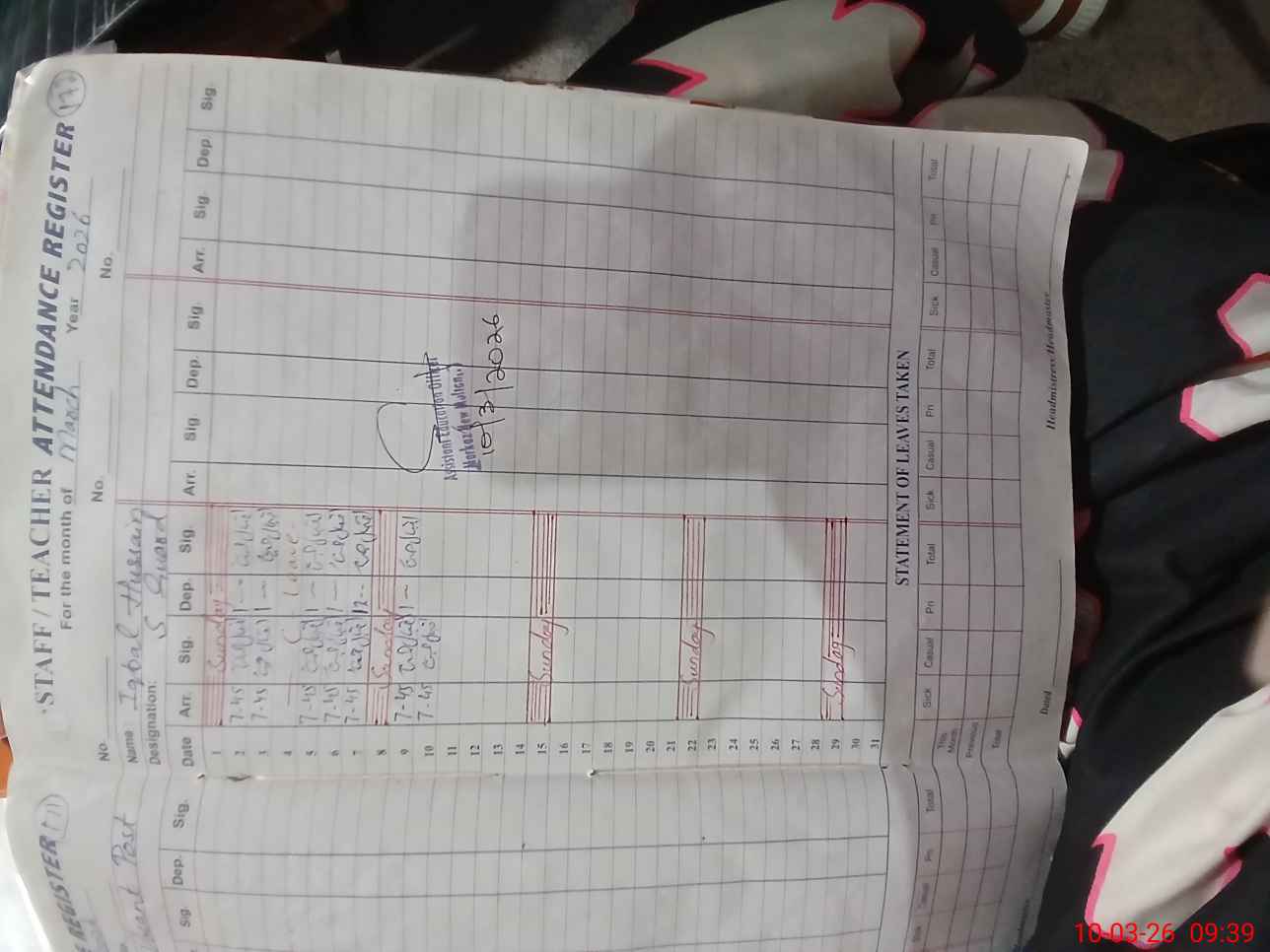 | Monitoring Date: 10-03-2026 | Start Time: 10-03-2026 09:19 AM | End Time: 10-03-2026 09:39 AM | Name of MEA: Sa**** Za**** | |