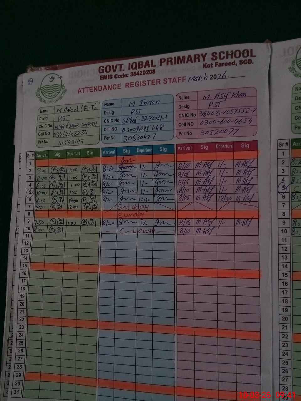 | EMIS Code: 38420408 | Name of School: GPS IQBAL KOT FARID | |||