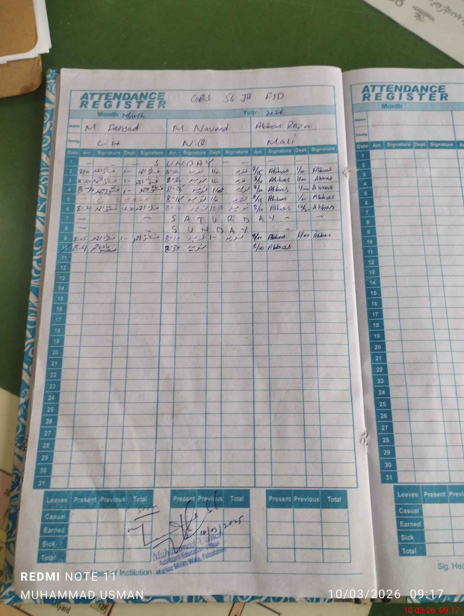 | CNIC | Full Name | Designation | R/C | Absence During Last Calender Month |