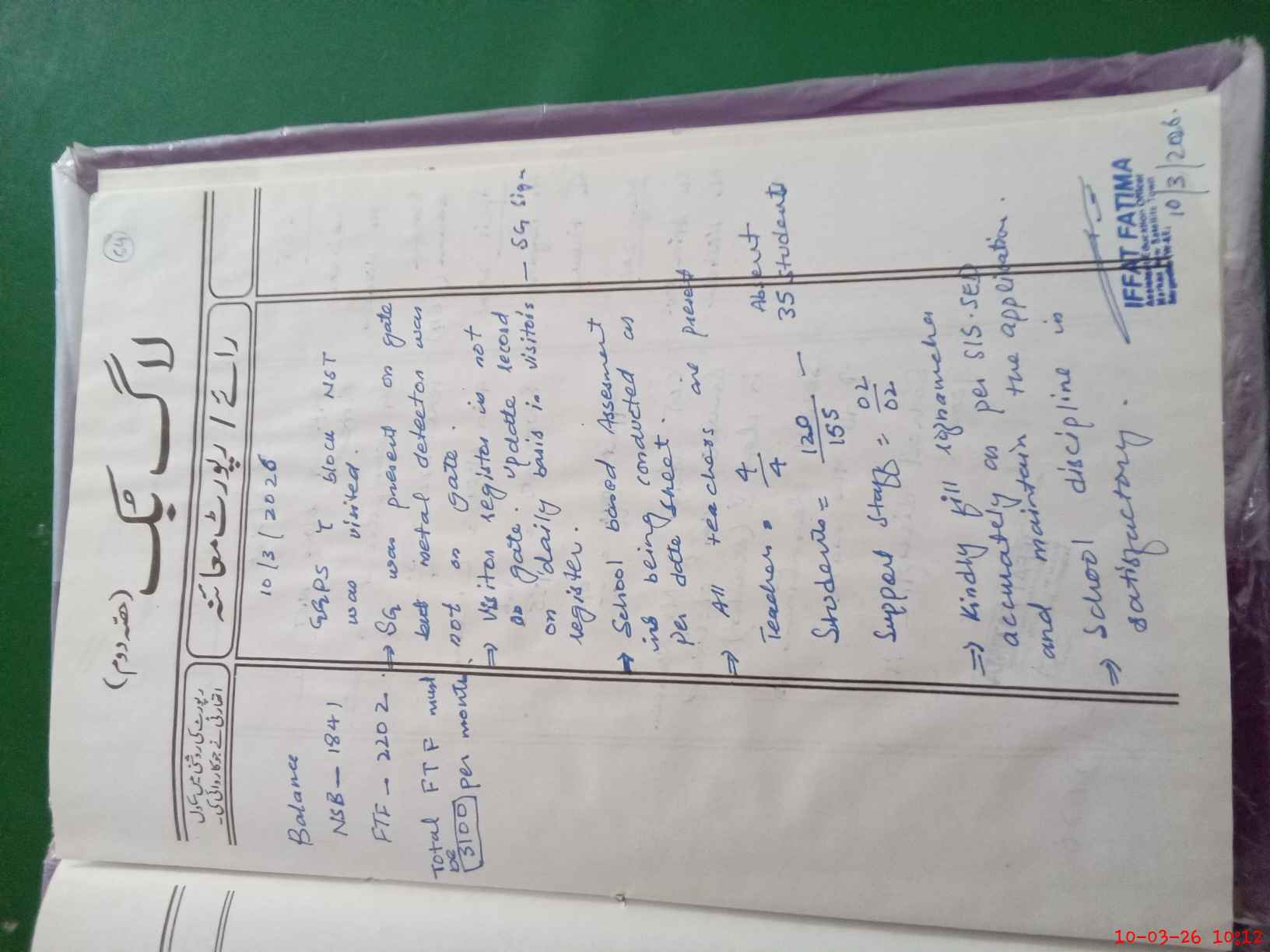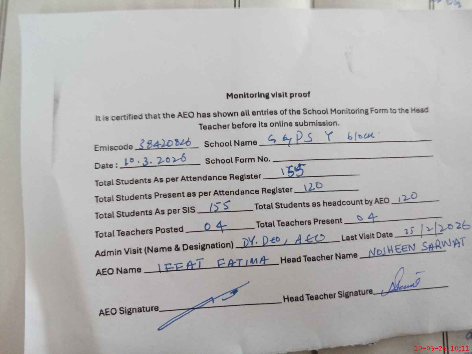 | Monitoring Date: 10-03-2026 | Start Time: 10-03-2026 09:43 AM | End Time: 10-03-2026 10:12 AM | Name of MEA: IF**** FA**** | |