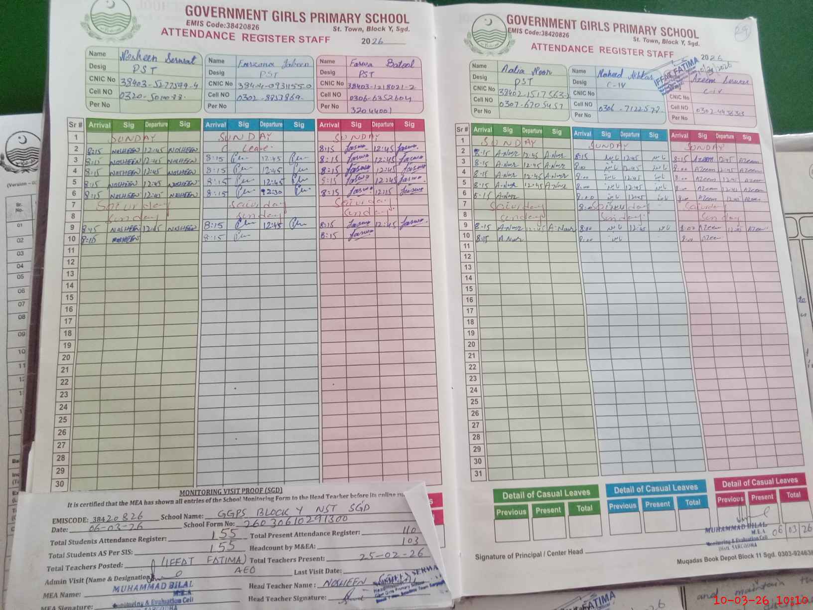 | Name: No**** Sa**** Designation: (School Headmaster's/Headmistress's) PST Phone/Cell Number: 03**** |