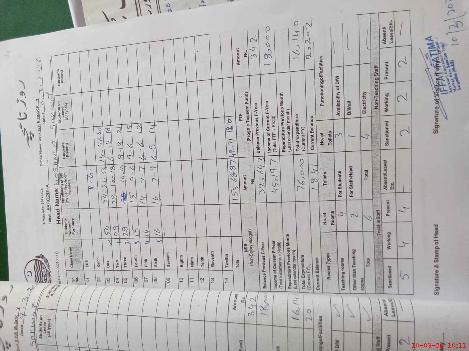 | EMIS Code: 38420826 | Name of School: GGPS BLOCK Y NST, SARGODHA | |||