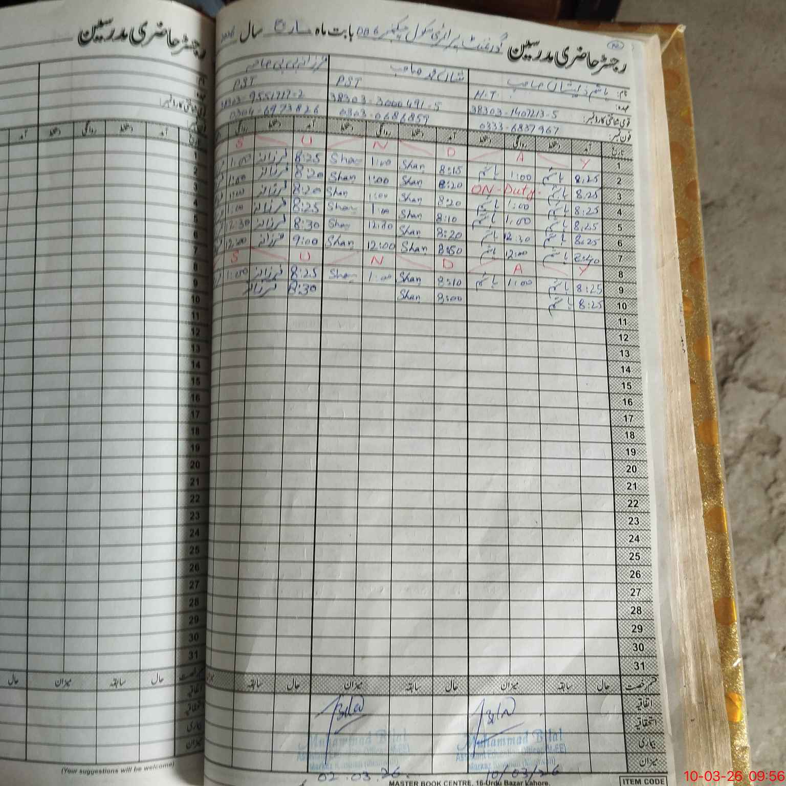 | CNIC | Full Name | Designation | R/C | Absence During Last Calender Month |