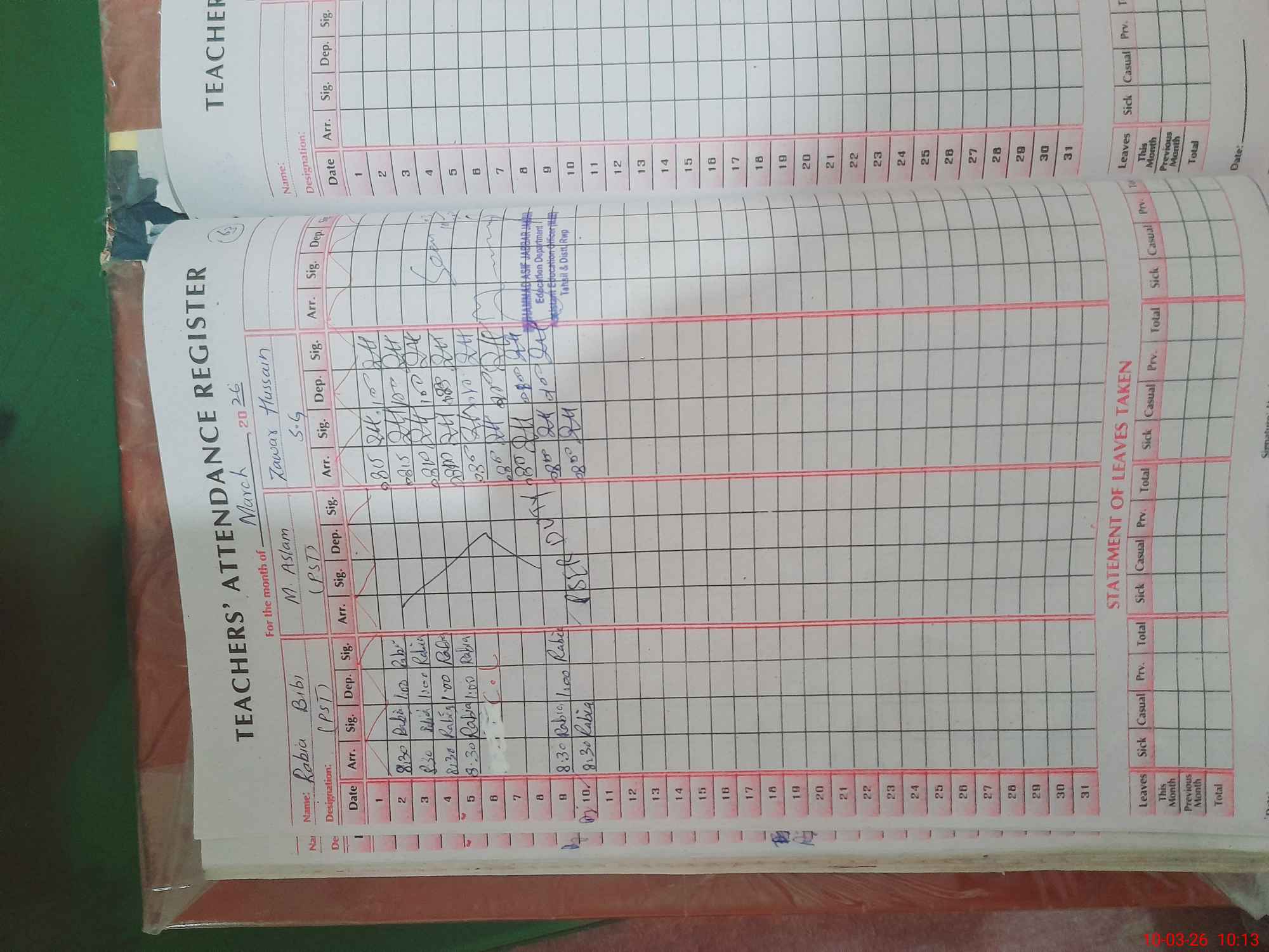 | 45**** | Ta**** Ra**** | PST Science/Maths | Regular | 0 | 0 | 0 | 0 | 0 | 0 | 0 | 0 | 0 | Exam Duty |