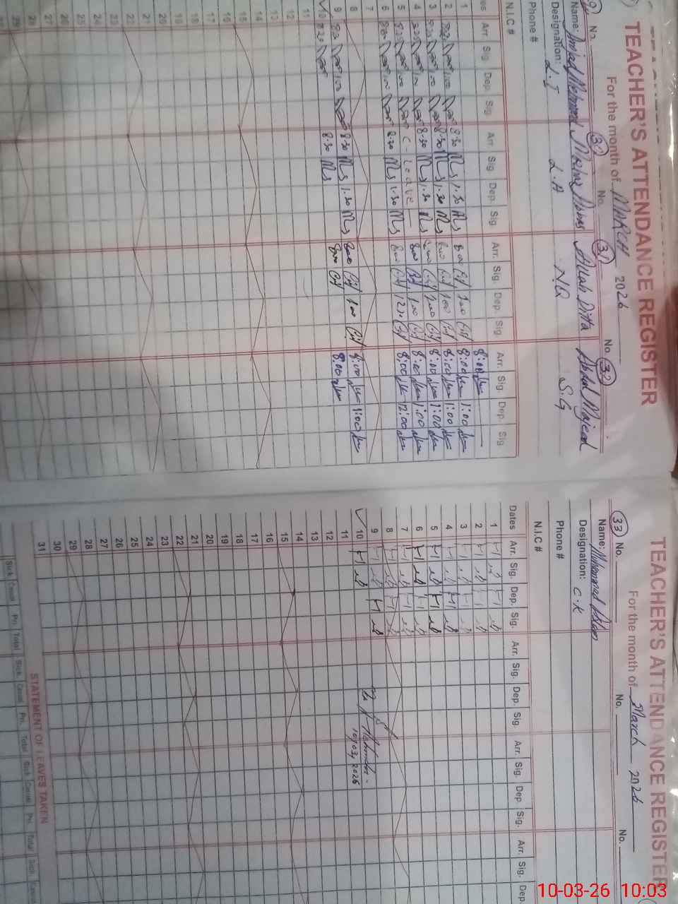 | CNIC | Full Name | Designation | R/C | Absence During Last Calender Month |