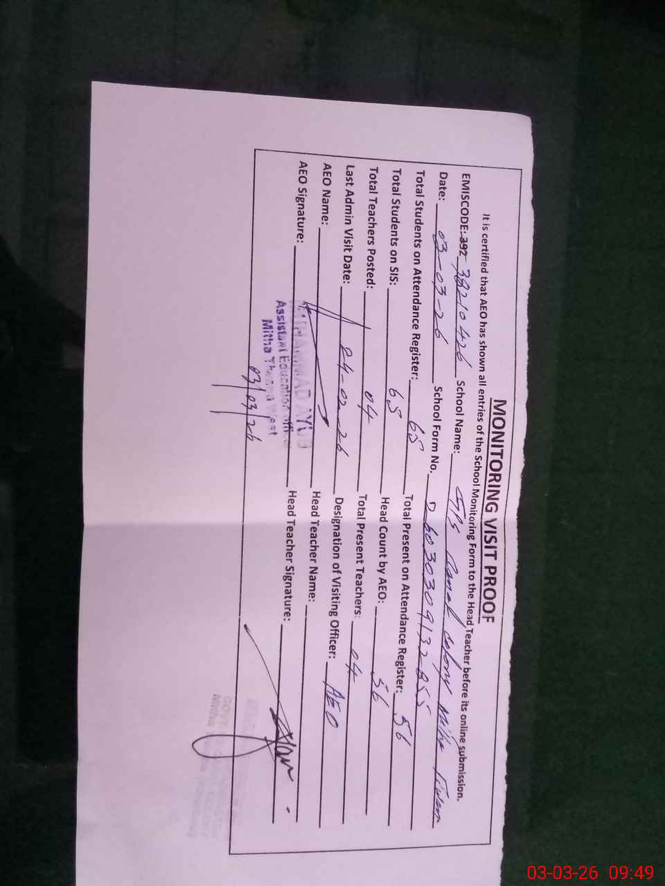 | Certified that this School was Inspected by the Undersigned MEA/DMO Today and the Information Stated Above is as Per Record. | |||||