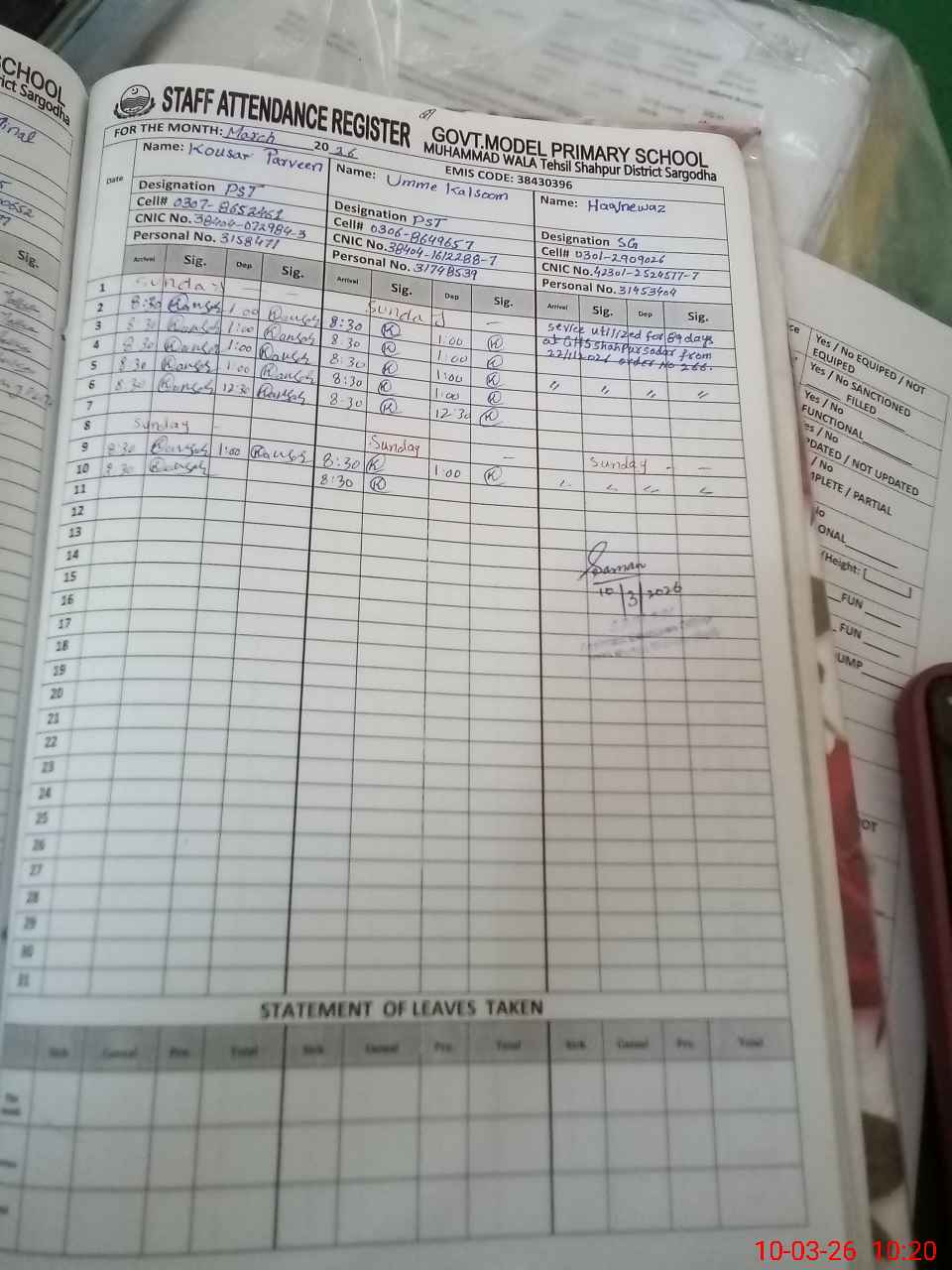 | Name: AM**** NA**** Designation: (School Headmaster's/Headmistress's) PST Phone/Cell Number: 03**** |