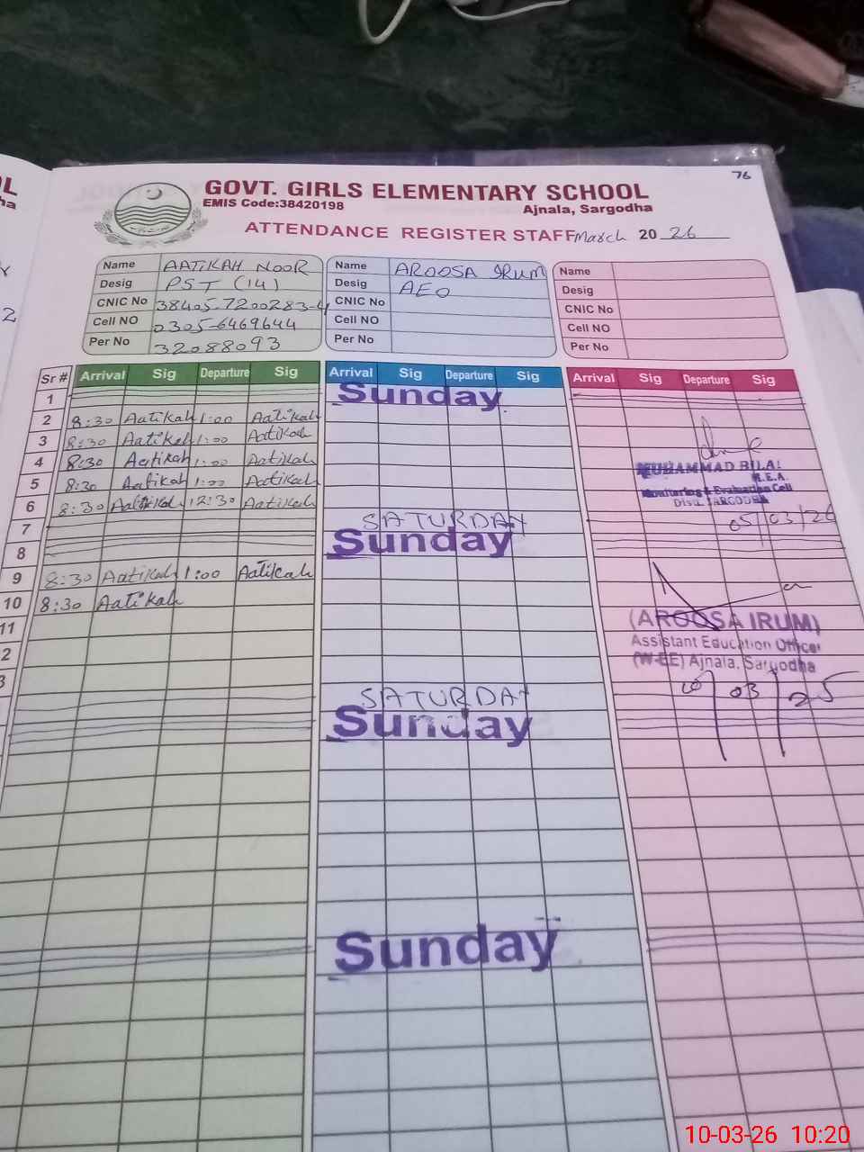 | Name of AEO: | AEO Contact No.: | MEA Phone#: 03**** | ||