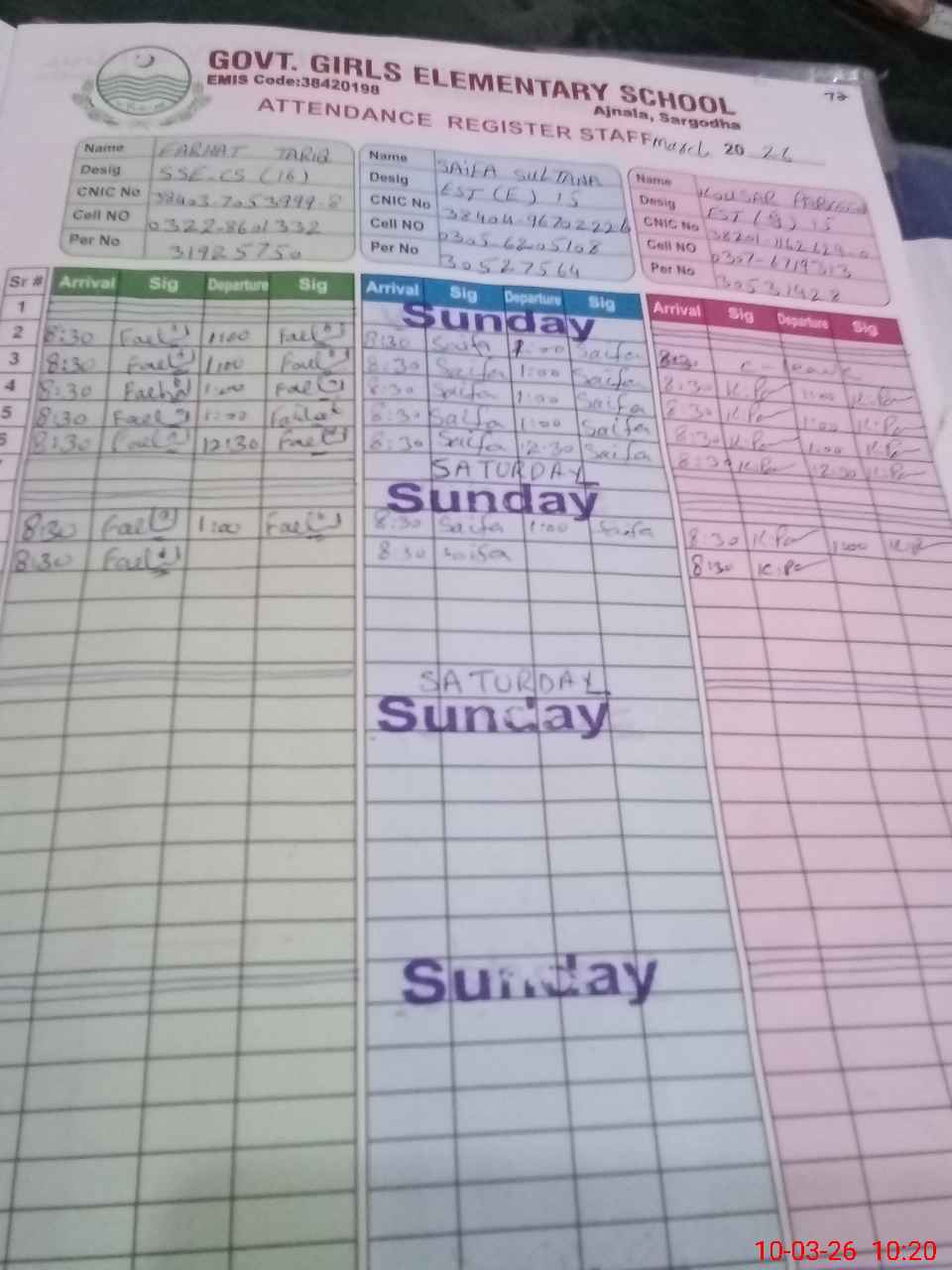 | Name: FA**** TA**** Designation: (School Headmaster's/Headmistress's) S.S.E.(C S) Phone/Cell Number: 03**** |