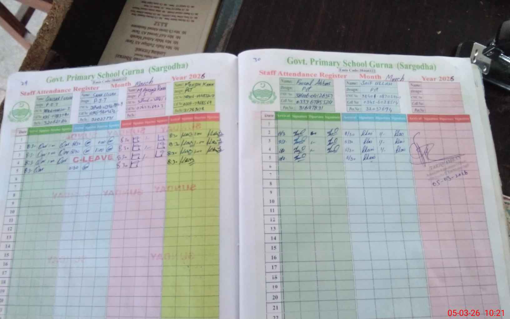 | Name: QA**** FE**** Designation: (School Headmaster's/Headmistress's) PST Phone/Cell Number: 03**** |