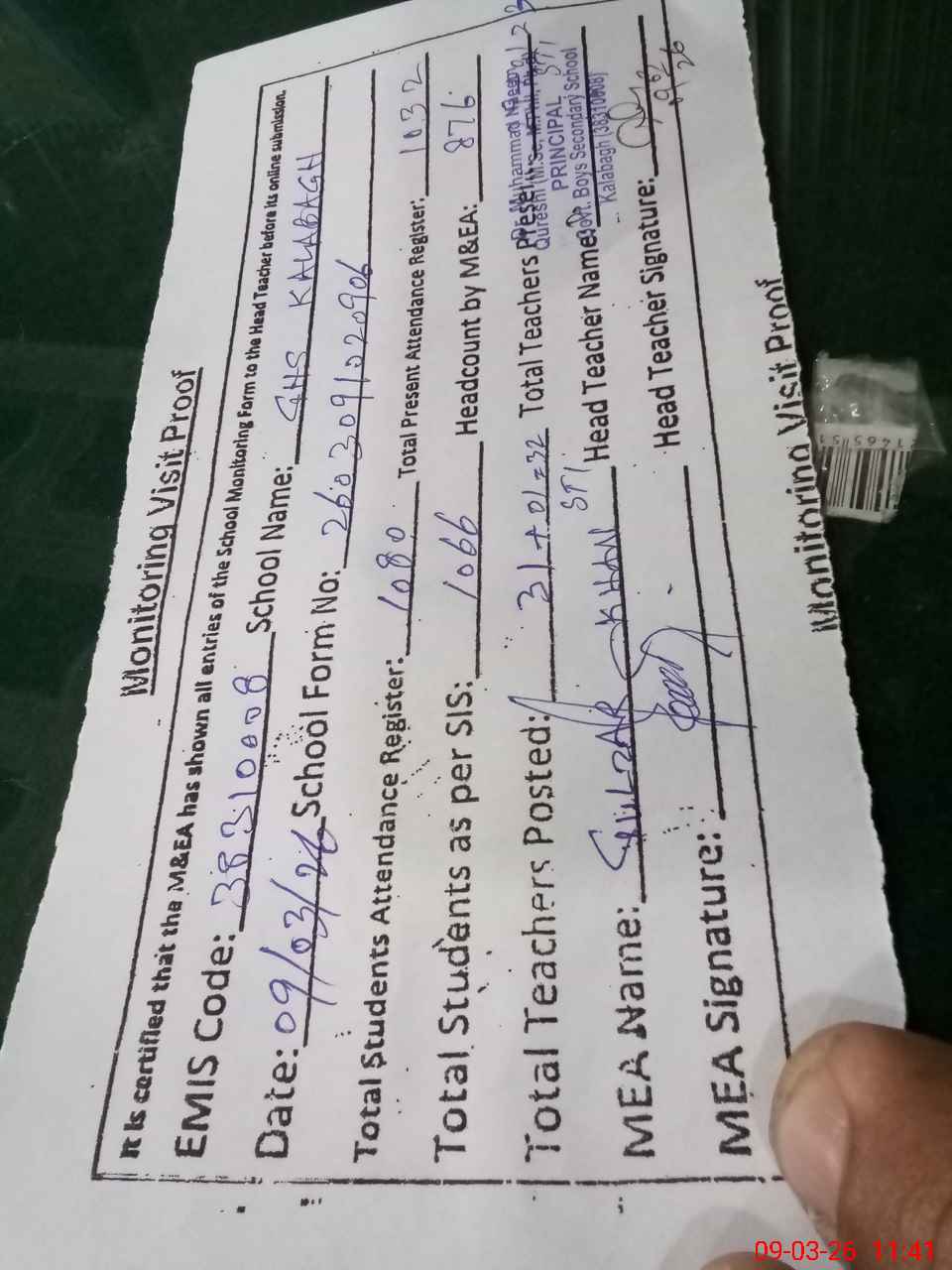 | EMIS Code: 38310008 | Name of School: GHS KALA BAGH | |||