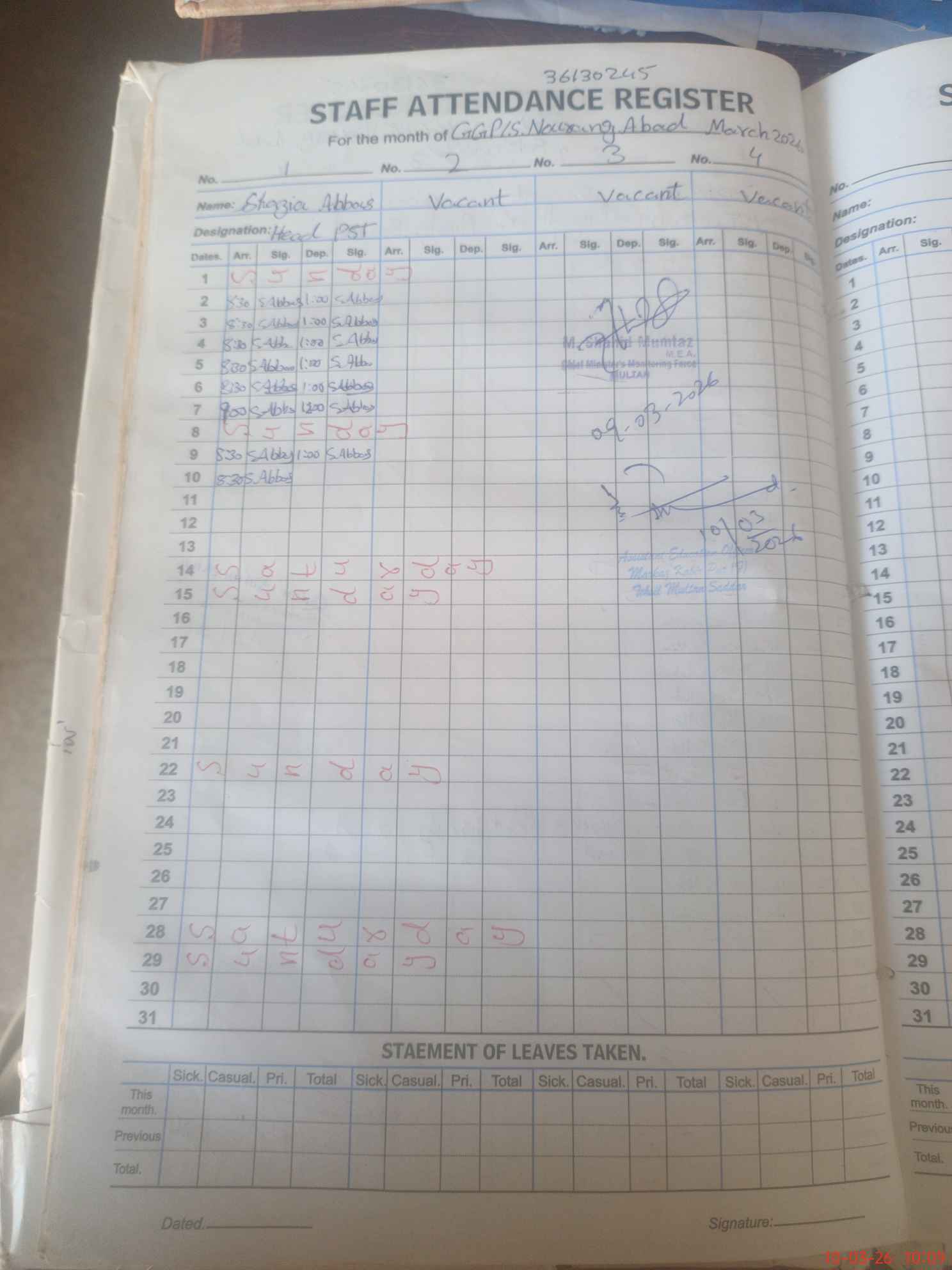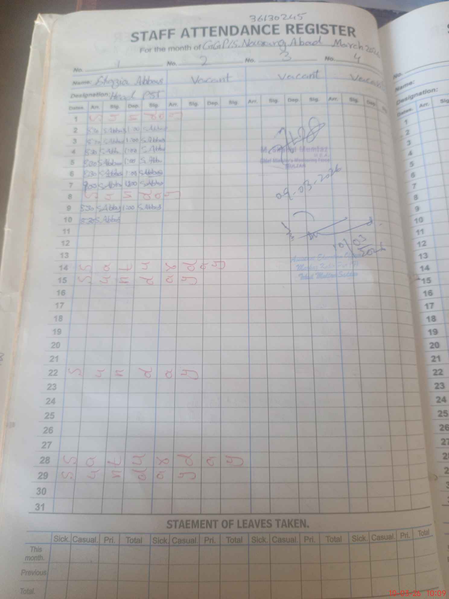 | Name: SH**** AB**** Designation: (School Headmaster's/Headmistress's) HEADMASTER Phone/Cell Number: 03**** |
