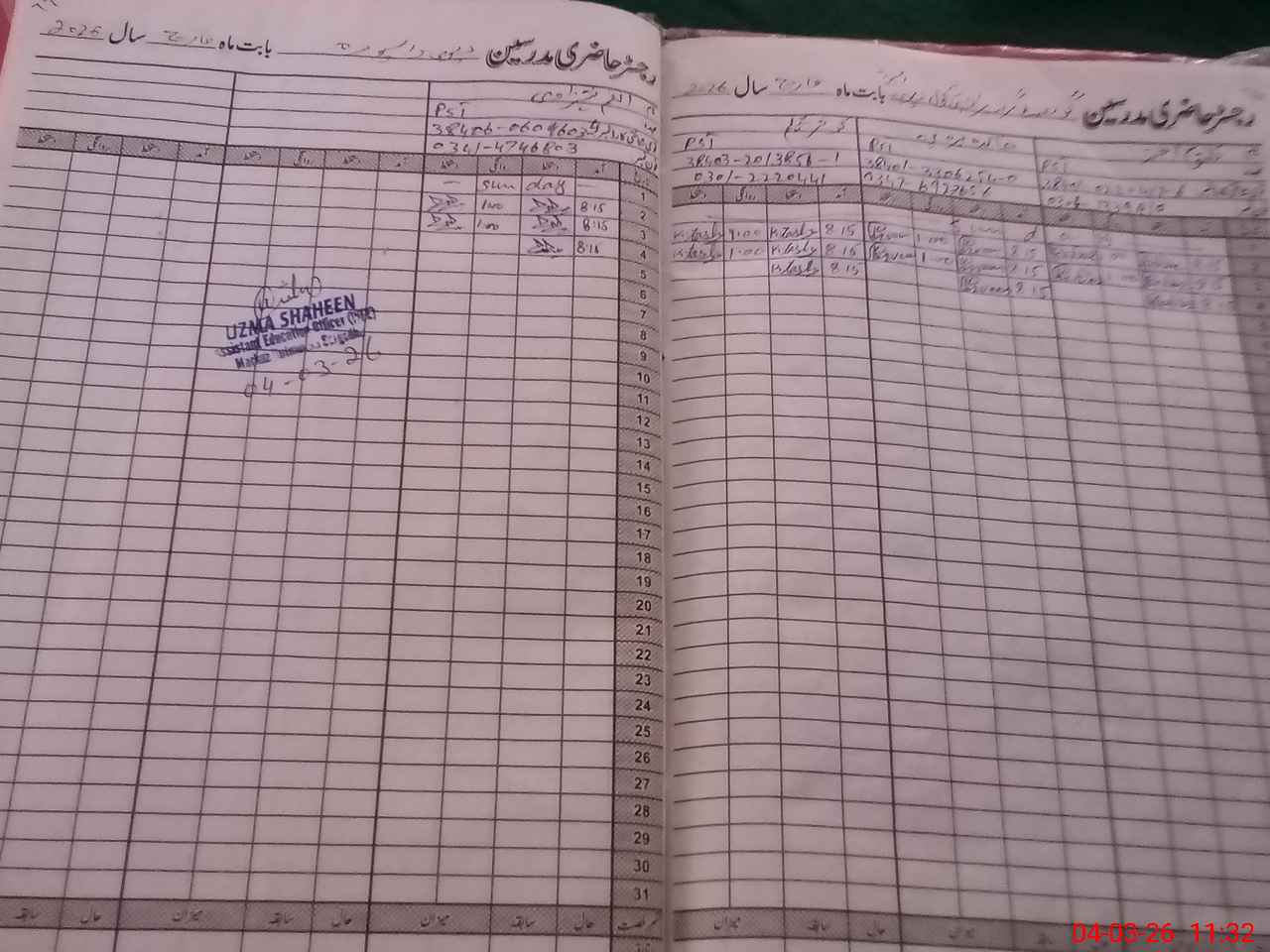 | Name: KA**** AK**** Designation: (School Headmaster's/Headmistress's) PST Phone/Cell Number: 03**** |