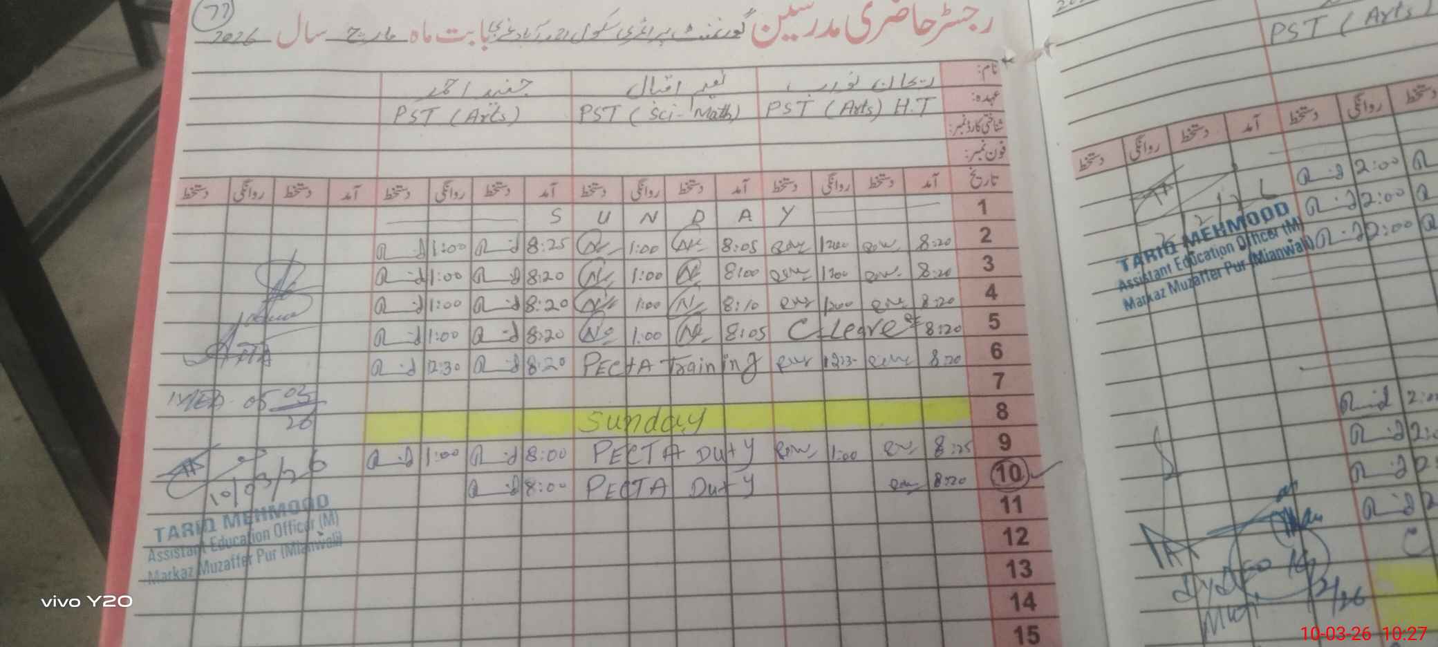 | Name: RE**** NA**** Designation: (School Headmaster's/Headmistress's) PST Phone/Cell Number: 03**** |