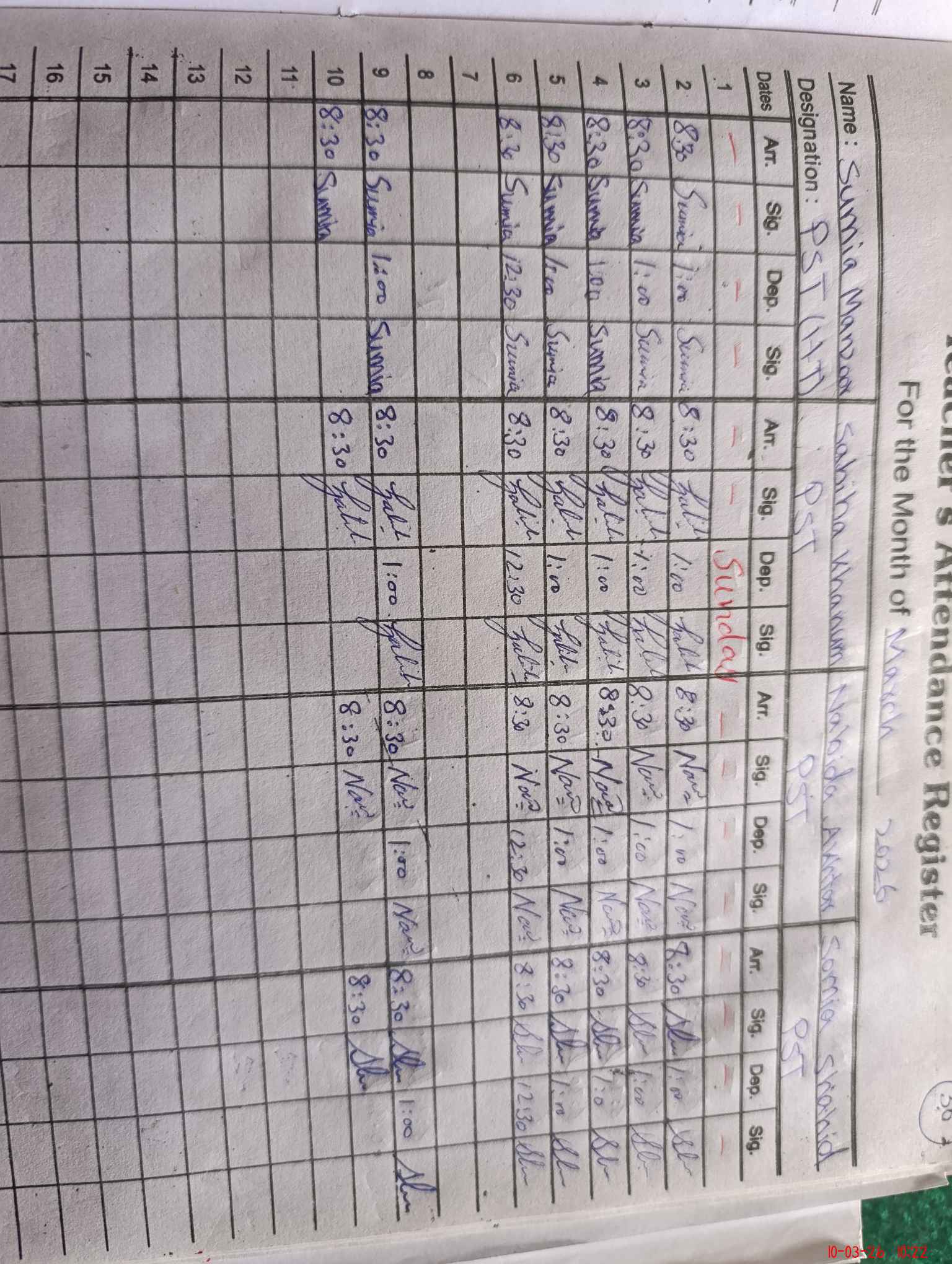 | Name: Su**** Ma**** Designation: (School Headmaster's/Headmistress's) PST Phone/Cell Number: 03**** |